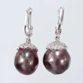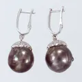 Ett par örhängen med odlade Tahitipärlor, Ø ca 13,5 - 15mm, semibarocka, ytfel, samt diamanter ca 0,90ctv, längd ca 37mm, vitguld 14K Vikt: 14,2 g.