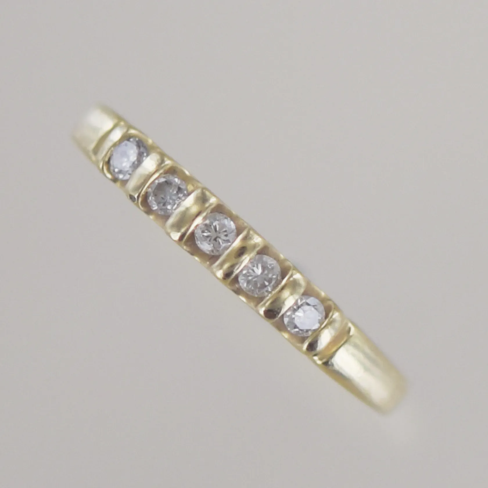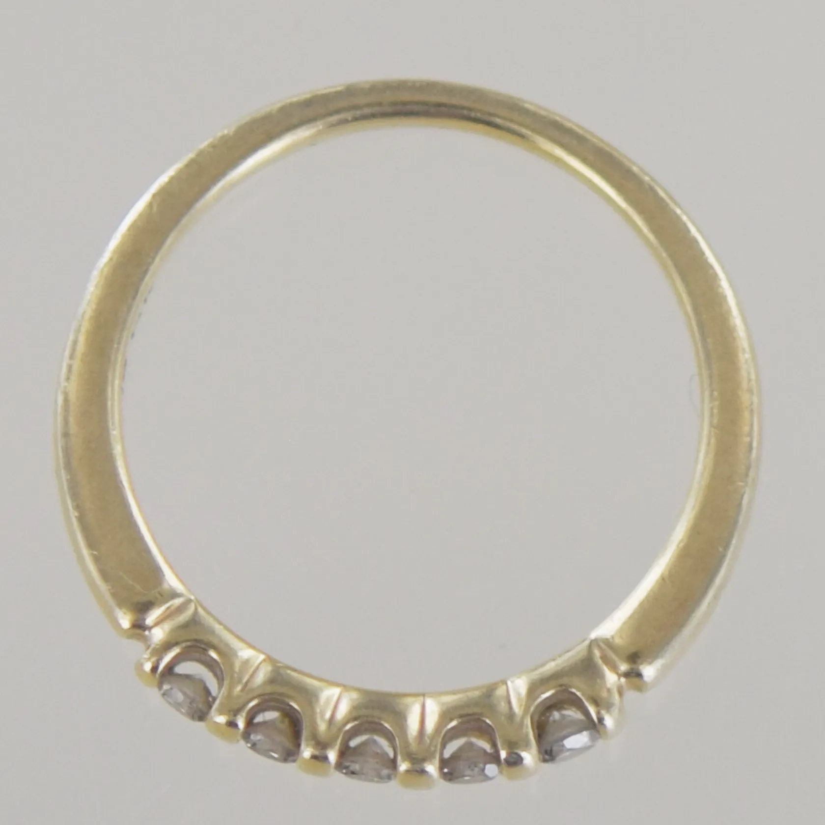 Alliansring med 5 diamanter 0,15ct TW, Ø 17,5 mm B 2-3 mm, 14k Vikt: 3,4 g.