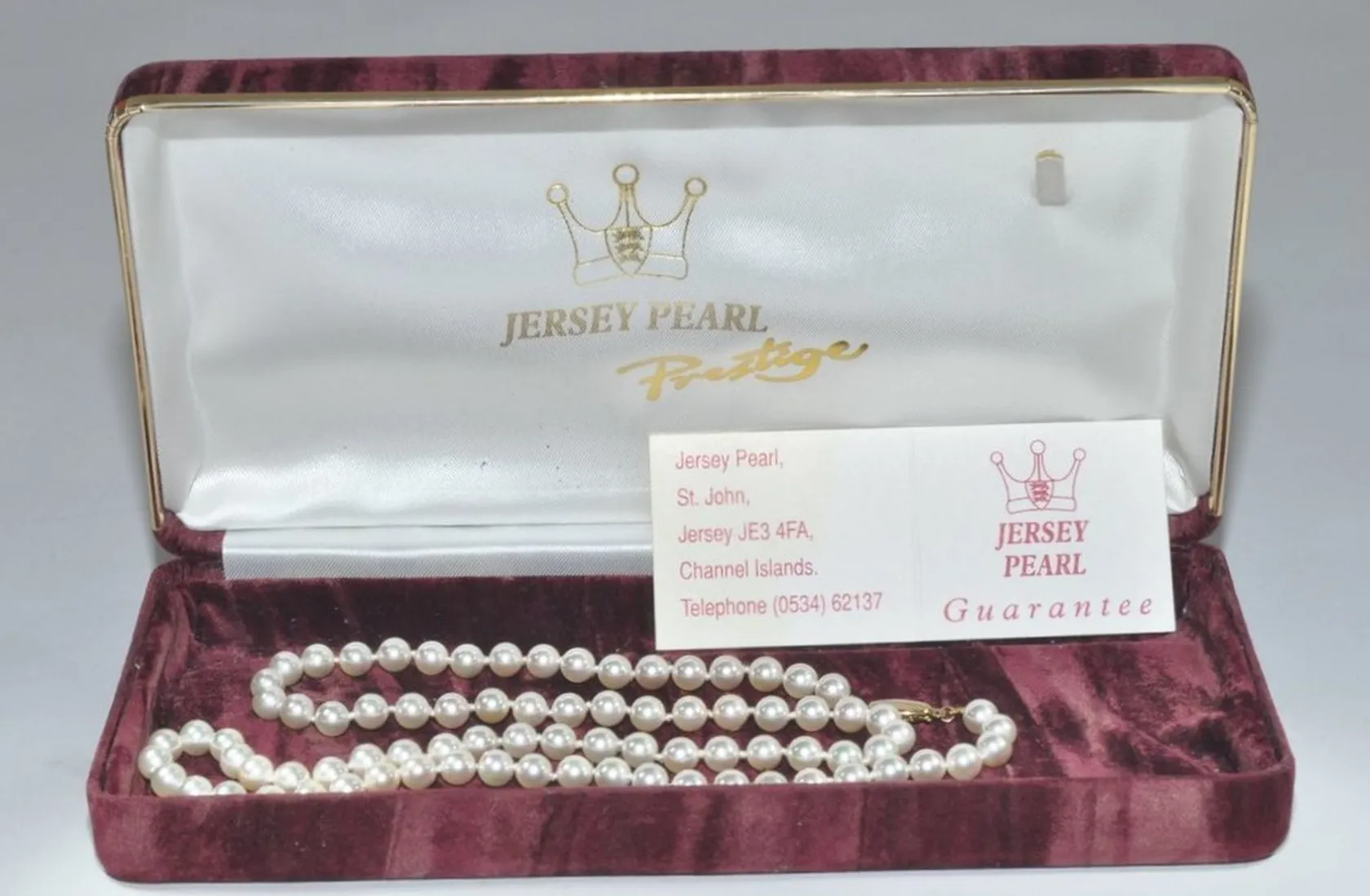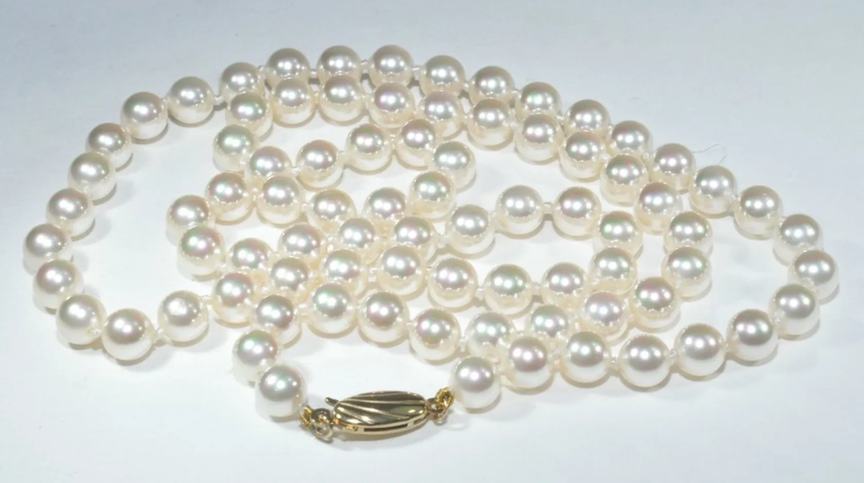 1 pärlcollier med box lås guld 9k lås 30 gr L 60 cm B 6 mm, 39097:7 au 1803 Vikt: 30 g.