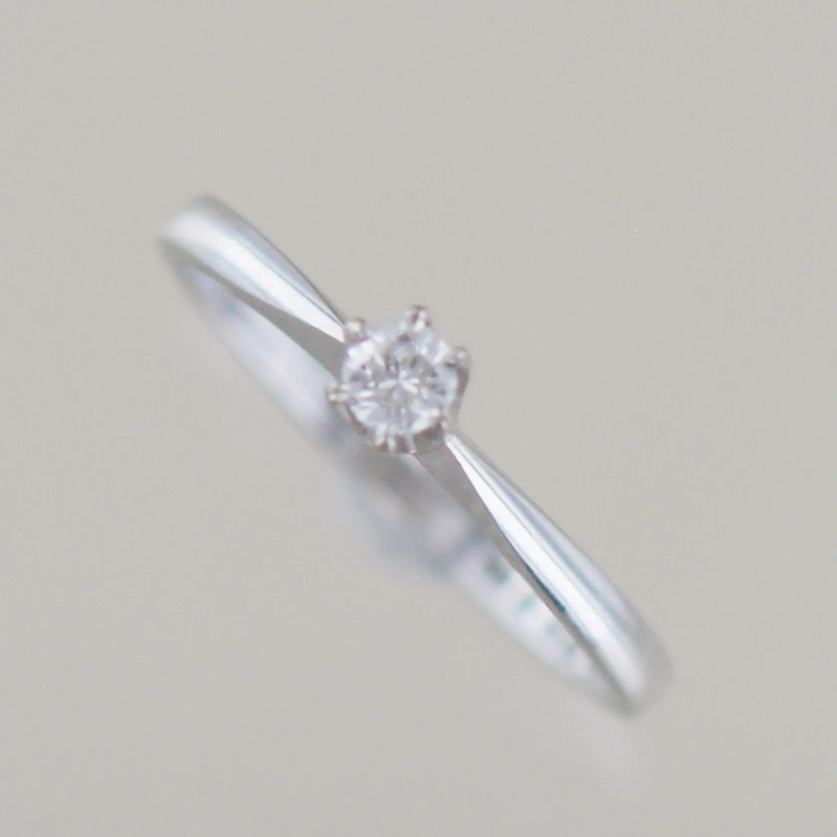 Ring med solitär diamant 0,13ct, Ø 17,25 mm, 18k Vikt: 2,3 g.