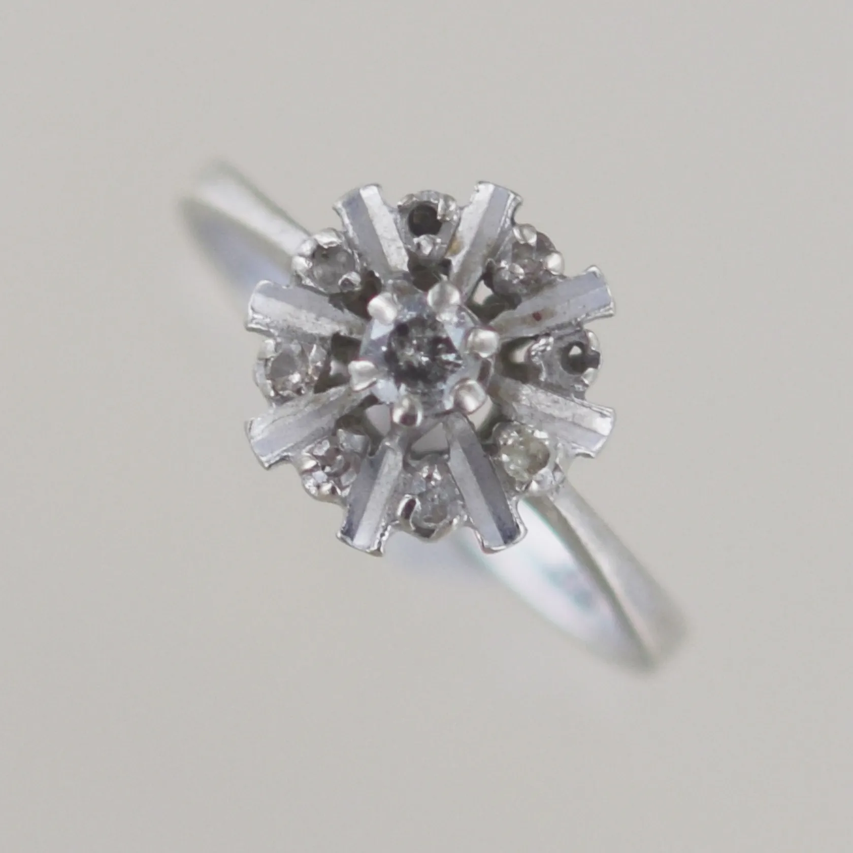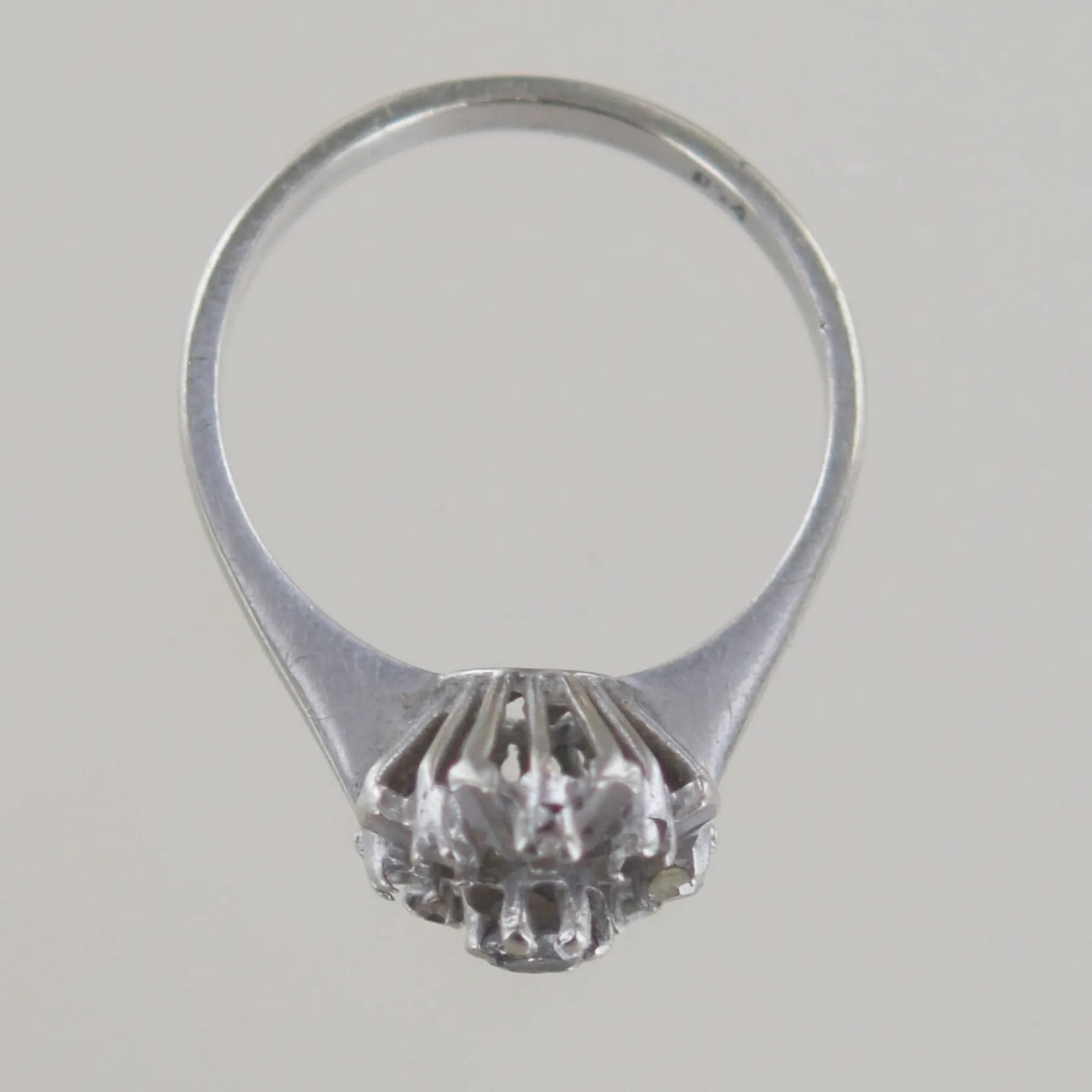 Ring med 1 diamant 0,5 ct och fem diamanter 0,001ct 3saknas, Ø 17 mm, 18k Vikt: 3,1 g.