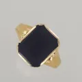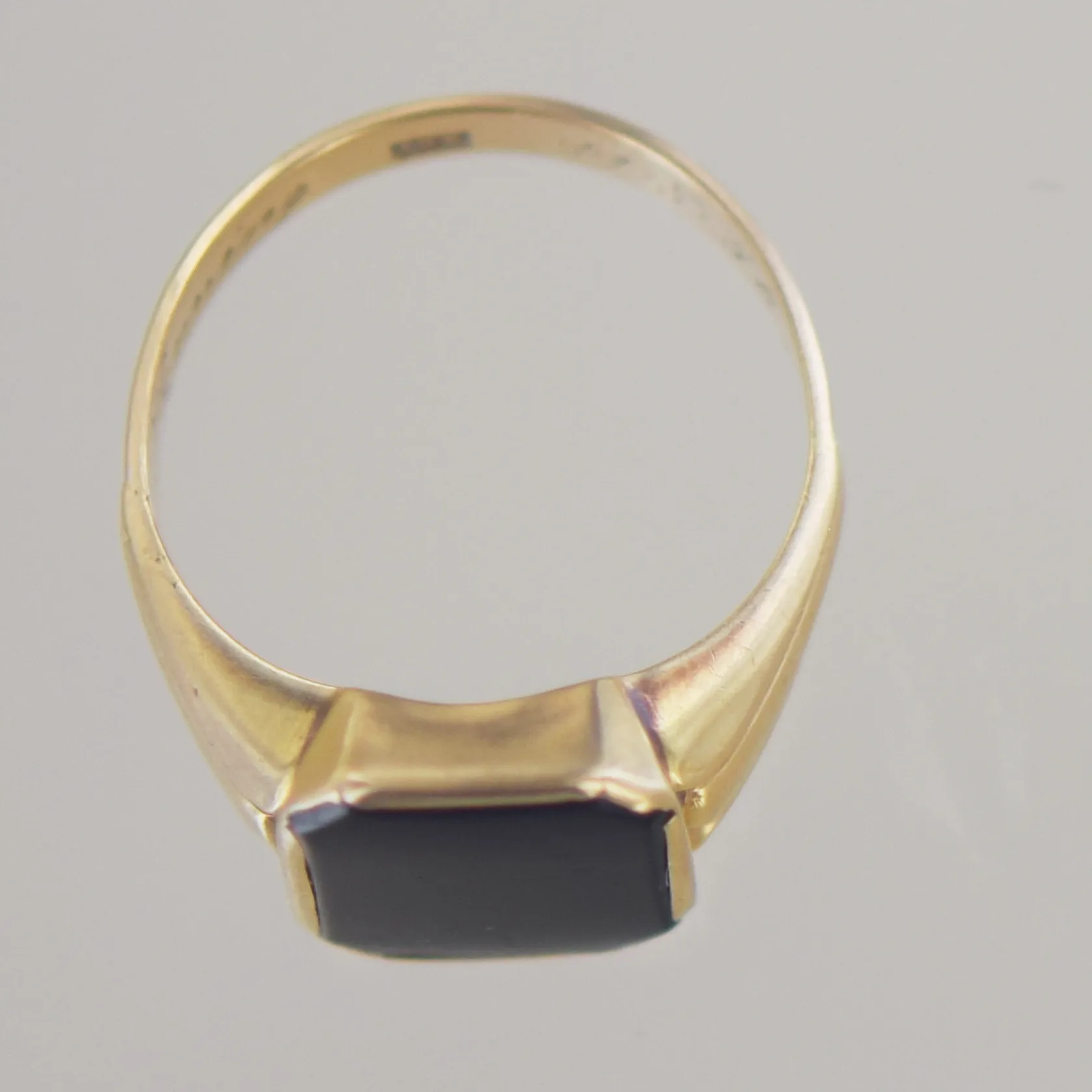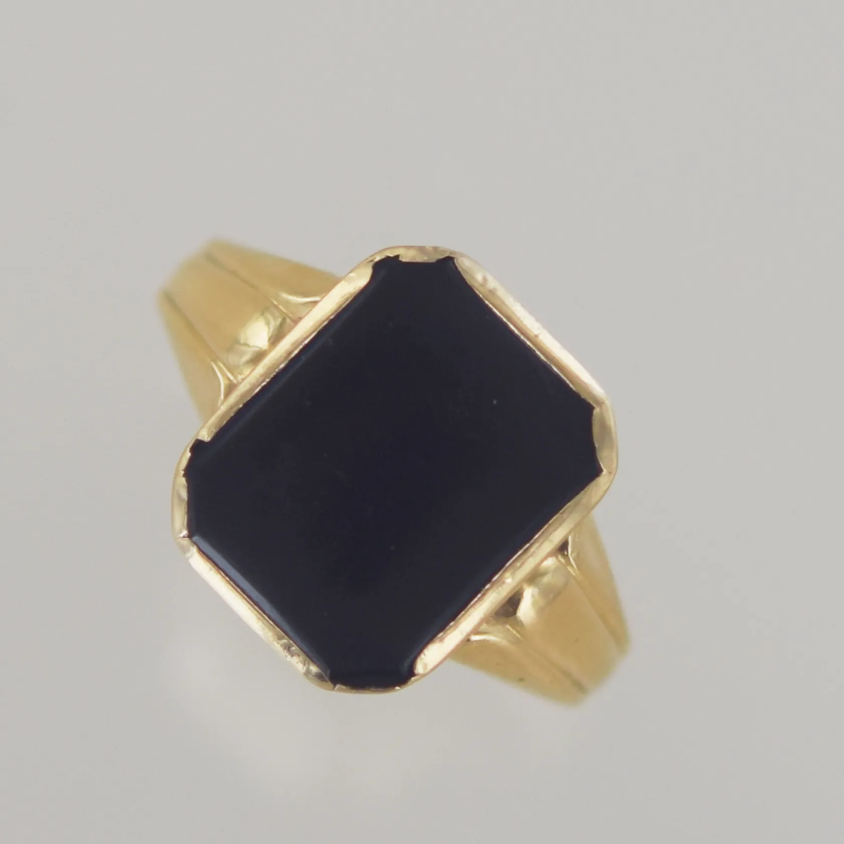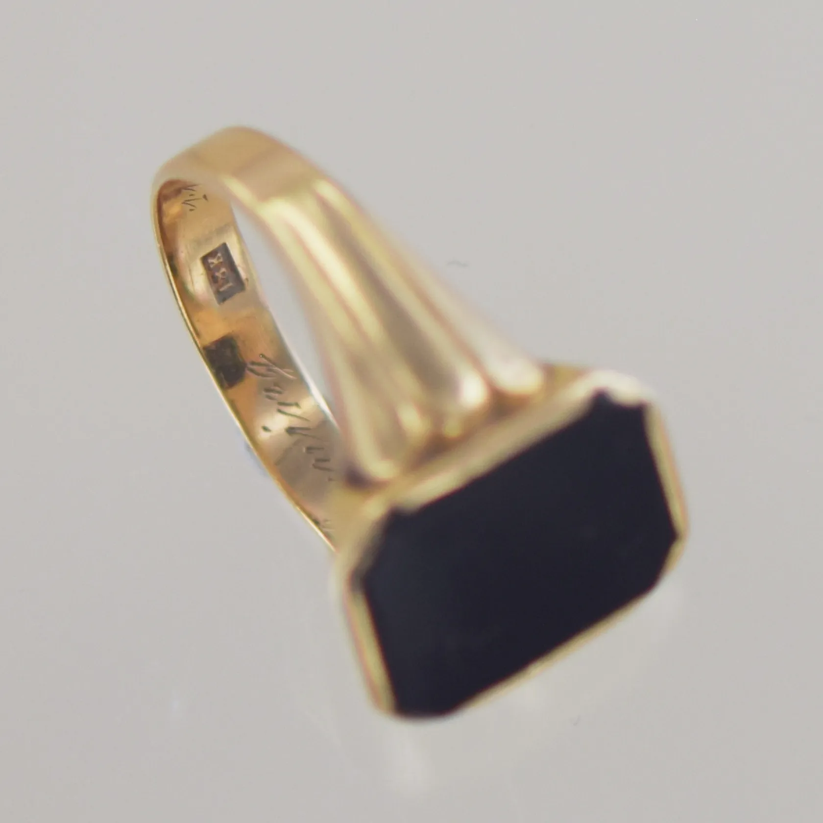 Klackring med sten 18k, Ø 19,5 mm klackens bredd 15 mm, graverad, små repor på stenen Vikt: 4,4 g.