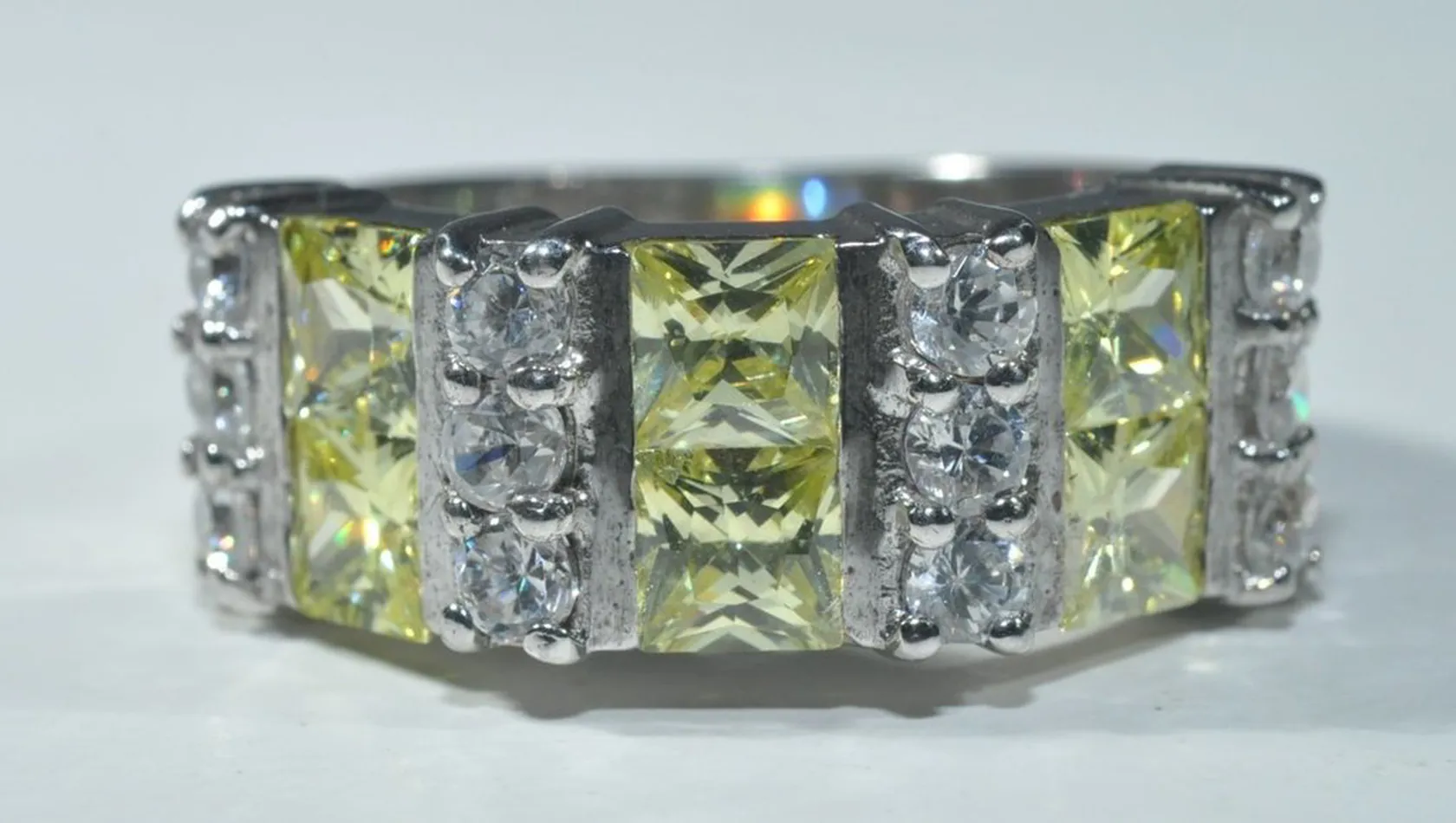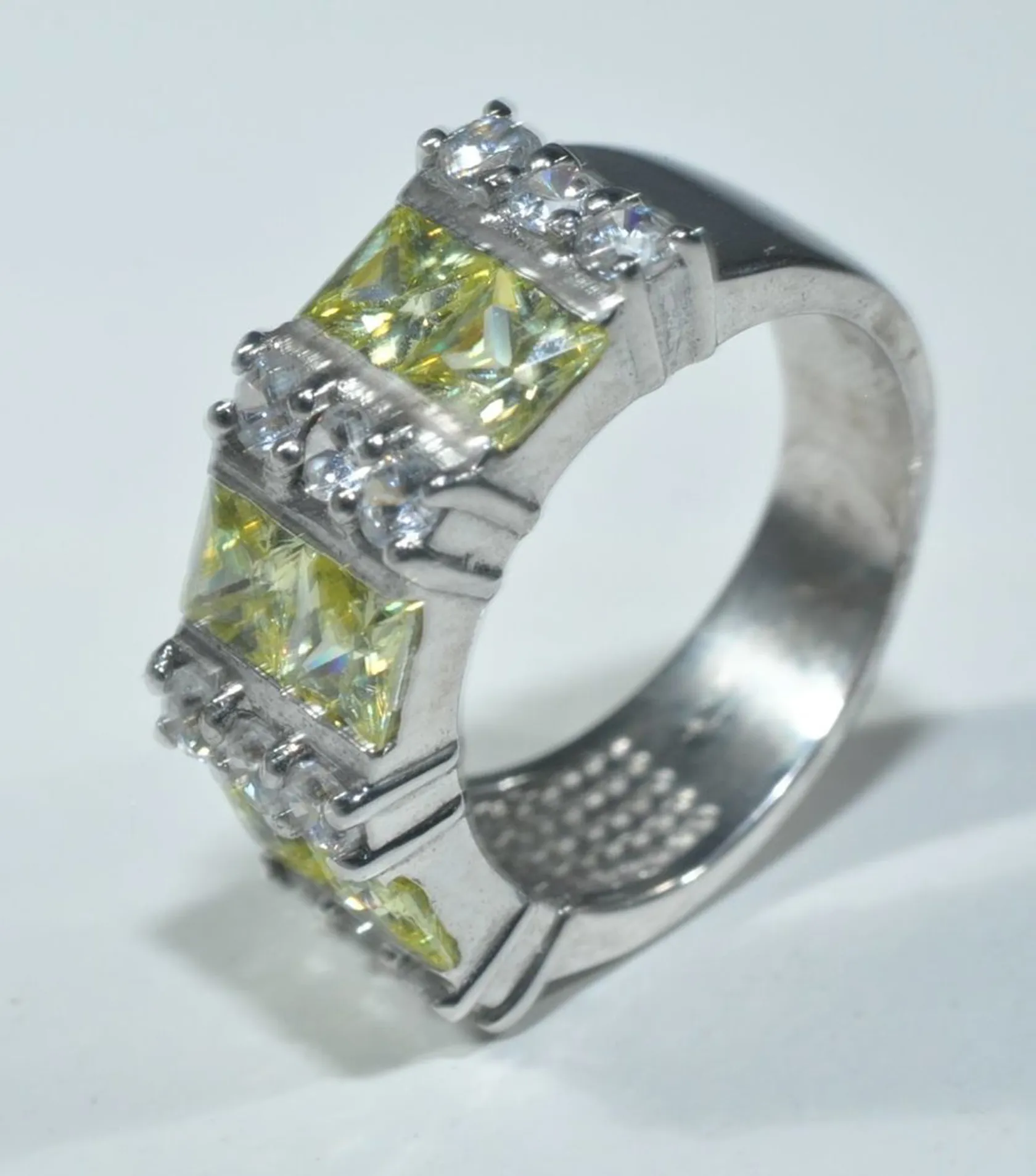 Ring med stenar,Ø 16,75 mm, bredd5-8 mm, silver 925/1000 Vikt: 6,2 g.