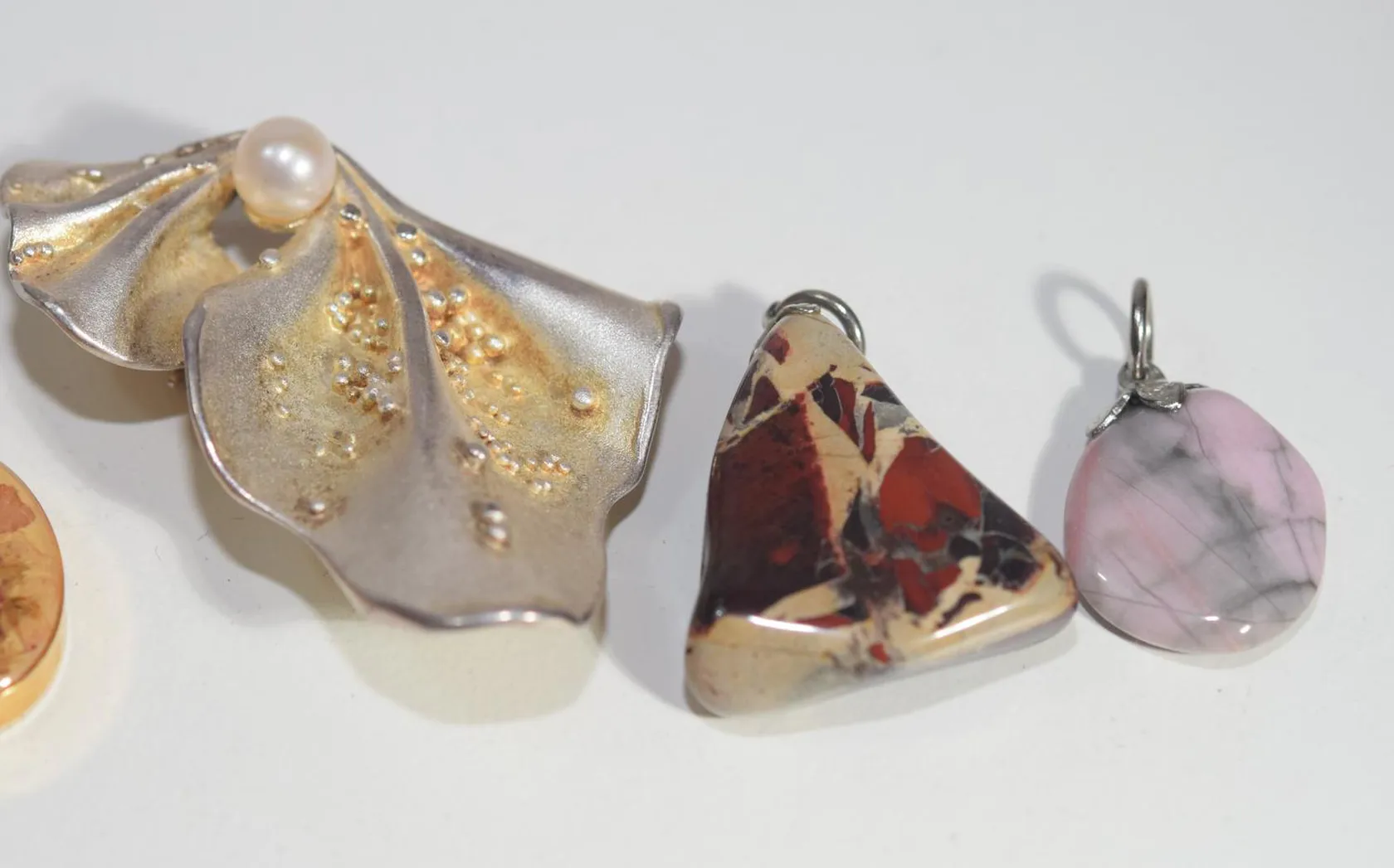 Hängen 2st med sten + brosch silver med pärla 925/1000 Vikt: 11,3 g.
