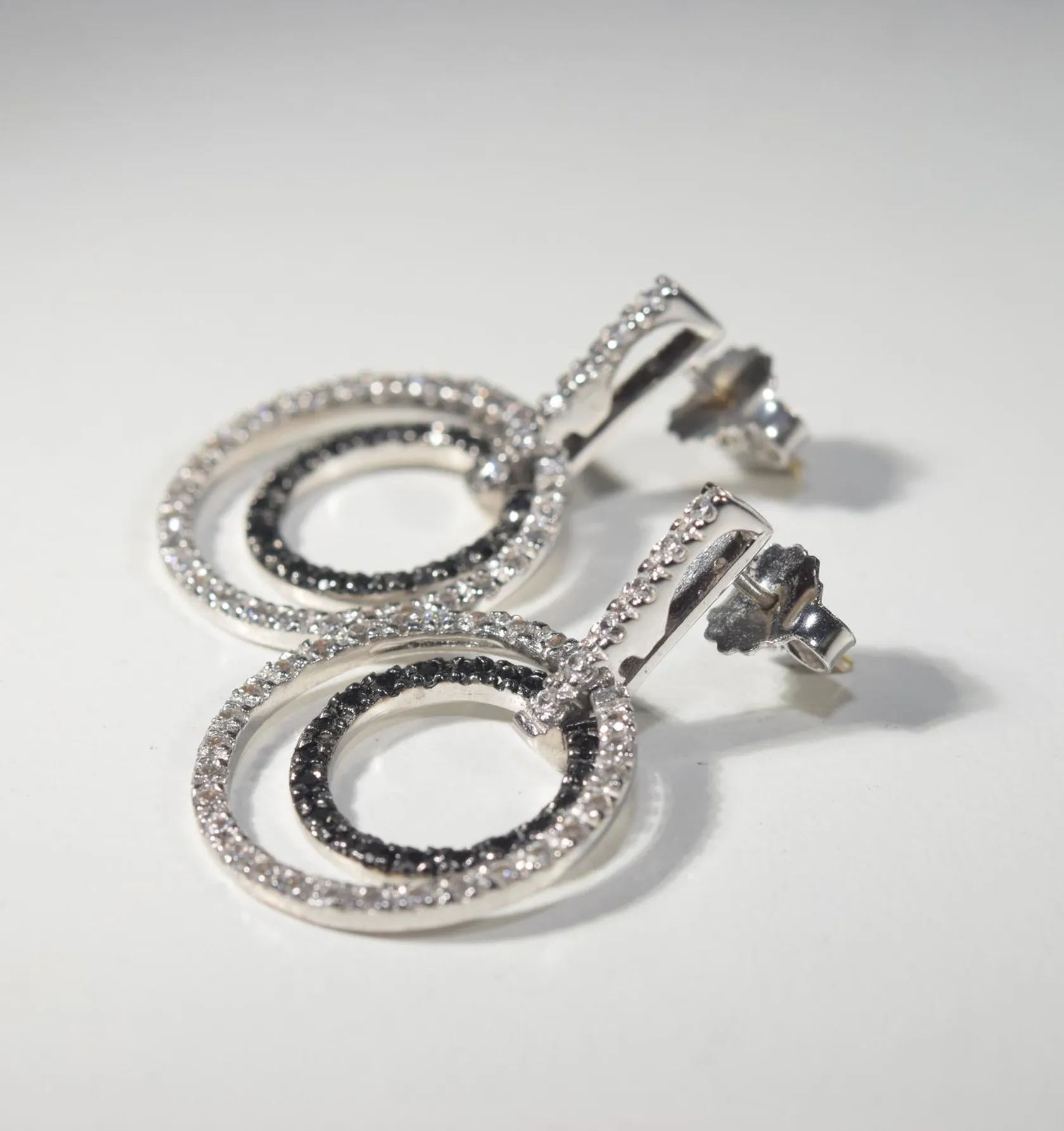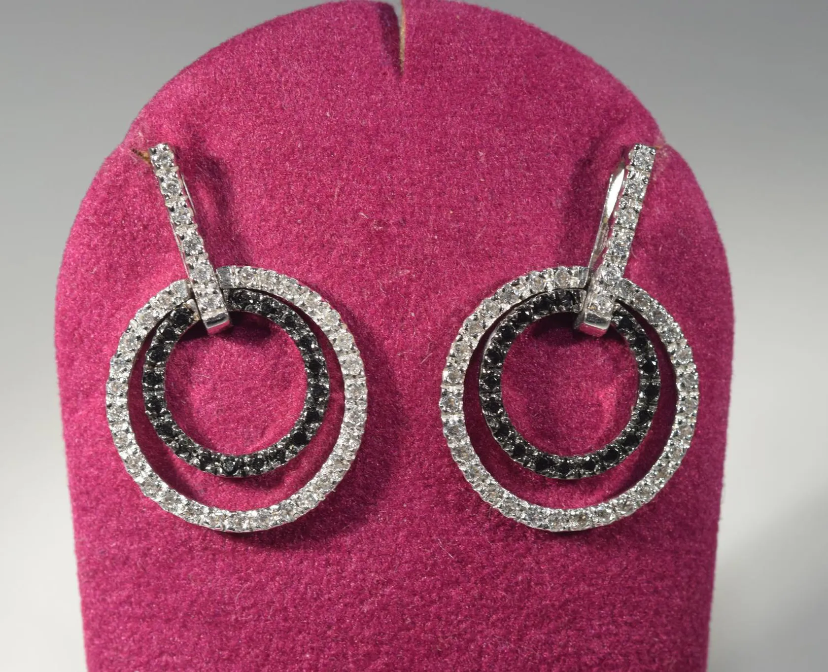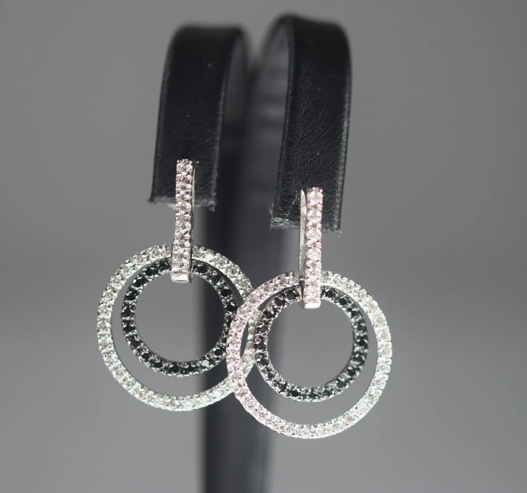 Ett par örhängen med vita och svarta stenar, längd 3 cm bredd 2 cm.vitguld 18k Vikt: 8,6 g.