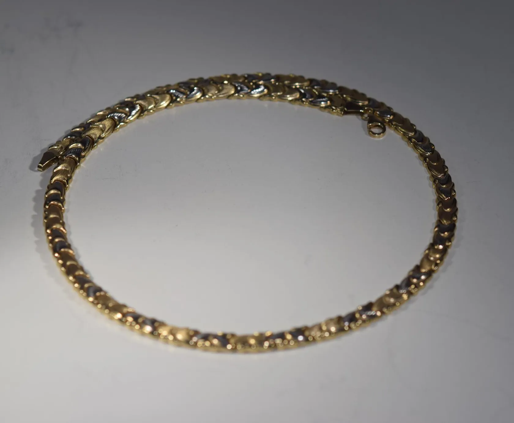 collier vit och rödguld L 44 cm B 5,82 mm 14k Vikt: 14,5 g.
