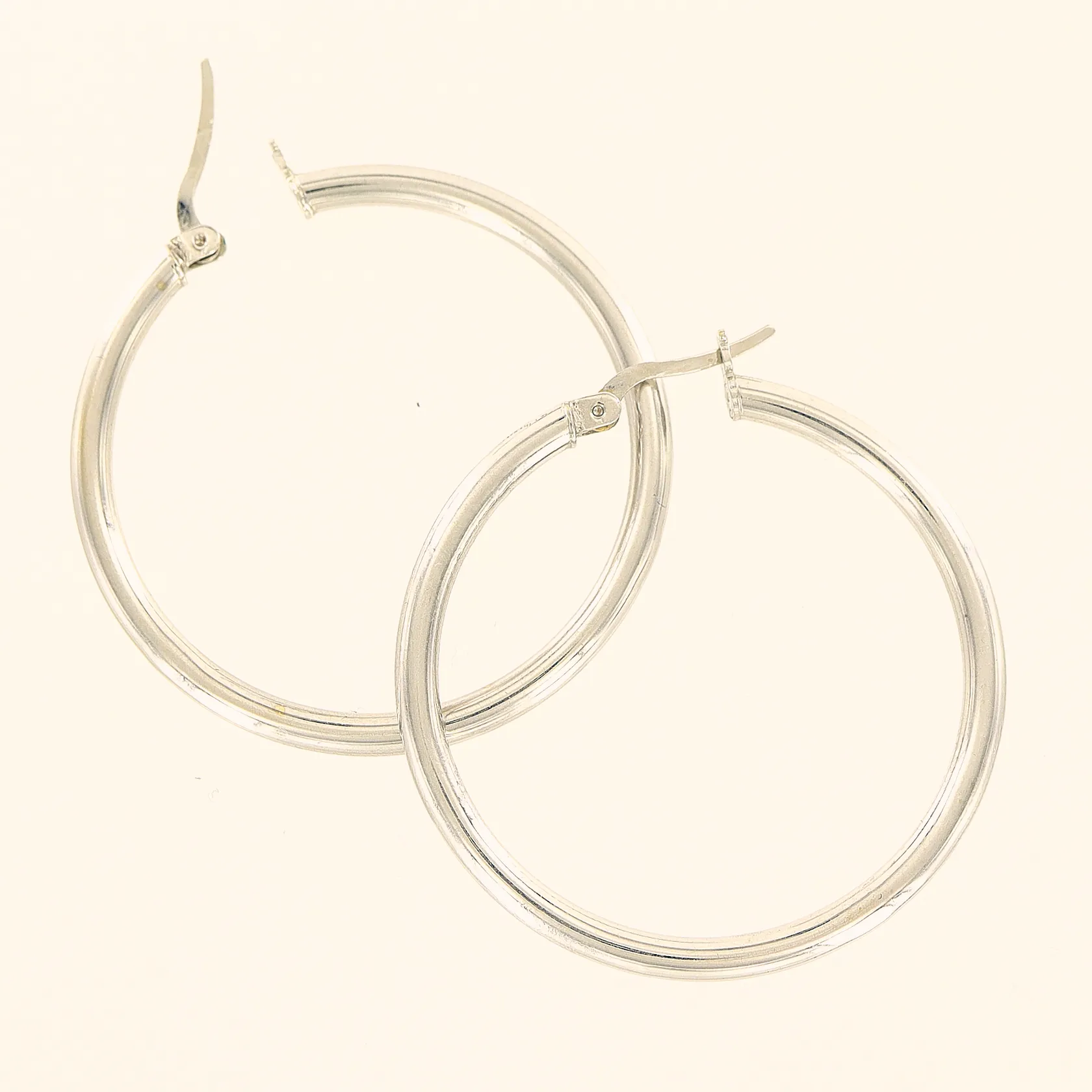Ett par örhängen, 40mm, bredd 3mm, vitguld, mindre bucklor, vitguld, 14K Vikt: 5,1 g.