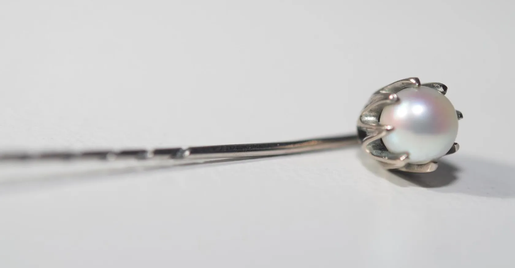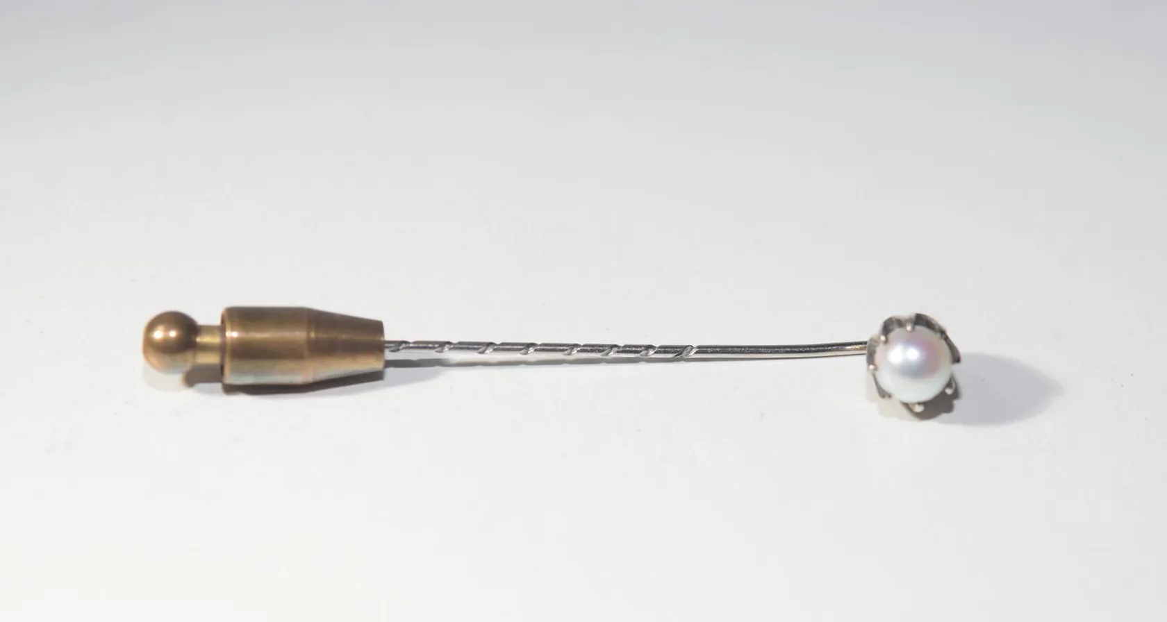 Slipshållare med pärla, pärlans bredd 5,24 mm, 18k men låset ej guld ej räknad i vikten Vikt: 1,5 g.