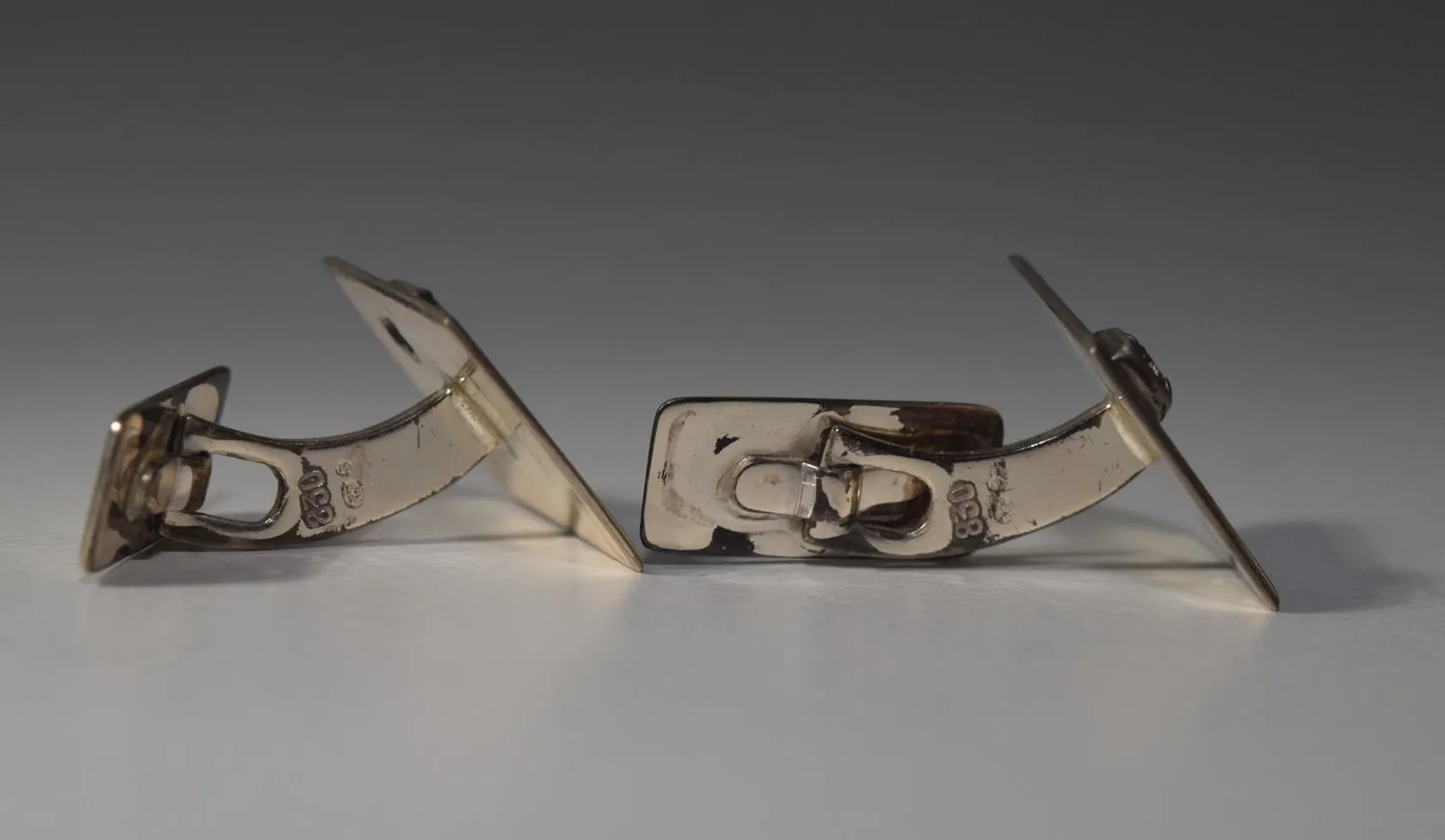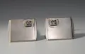 manschettknappar med sten, 1X1,5 cm, silver 830/1000 Vikt: 6,8 g.