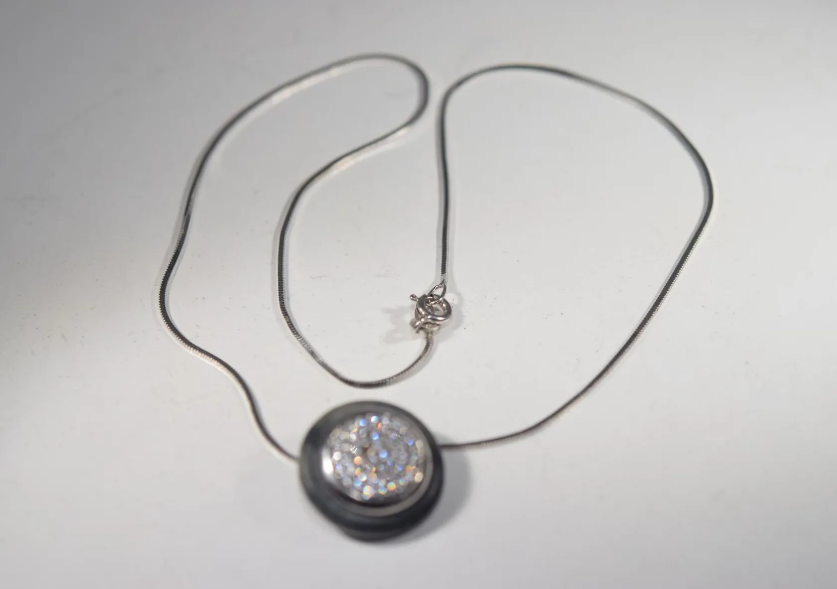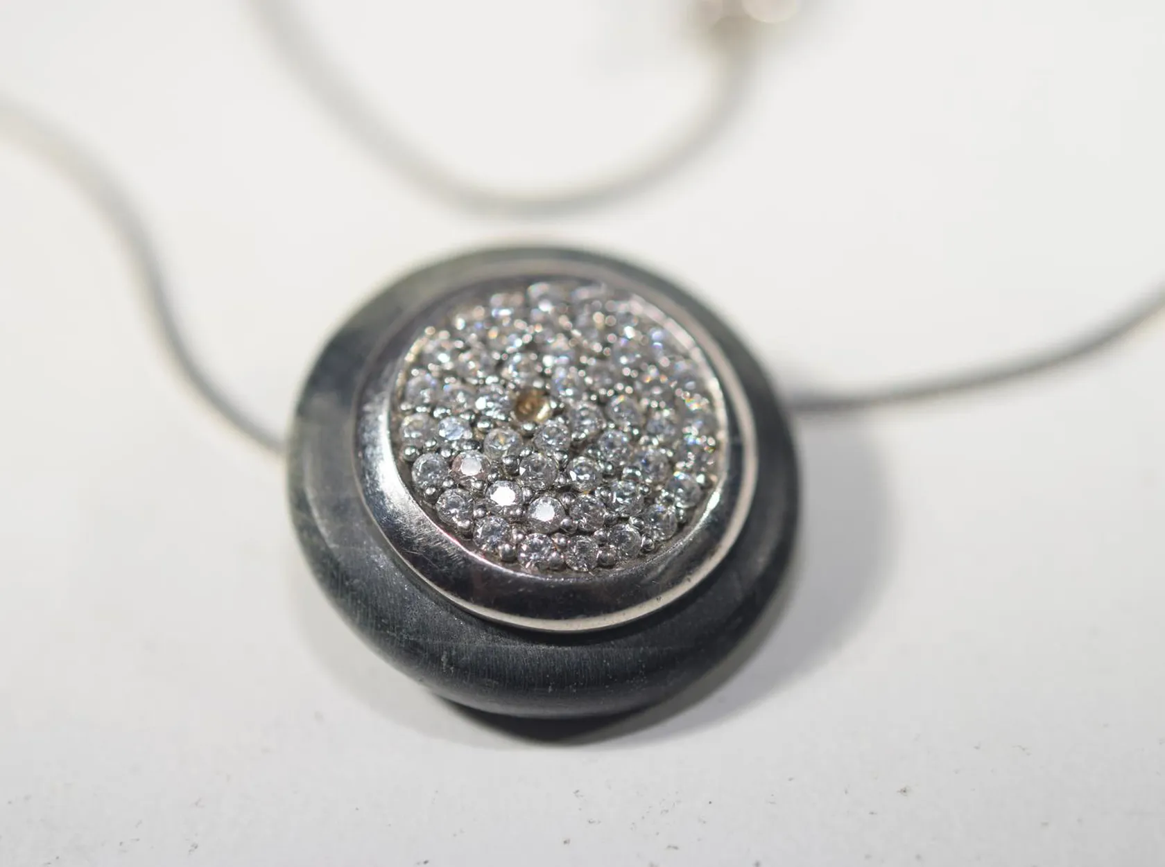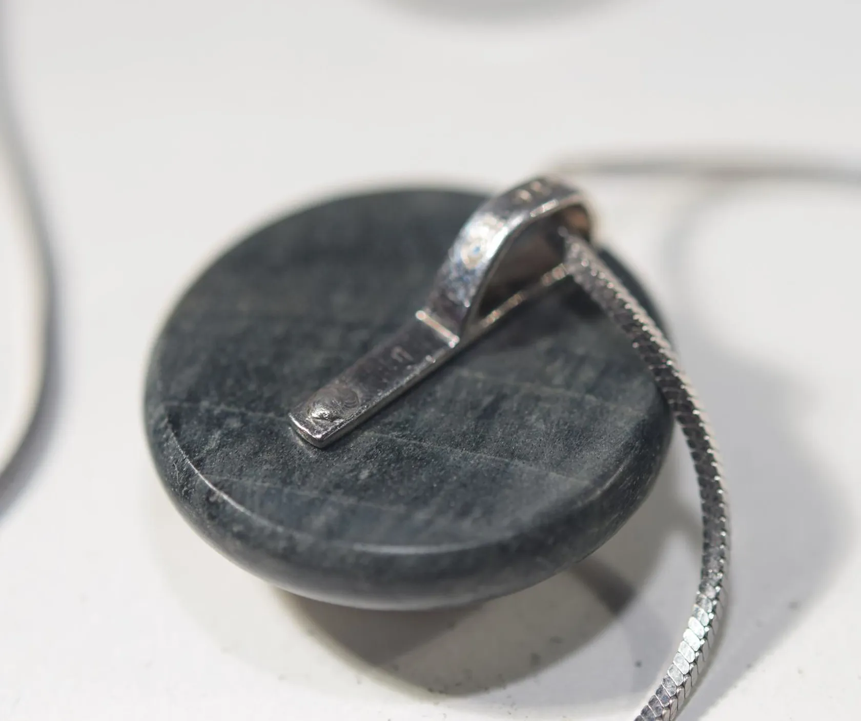 Halsband med hänge 2 cm, en sten saknas, längd 42cm. Silver 925/1000 Vikt: 6,3 g.