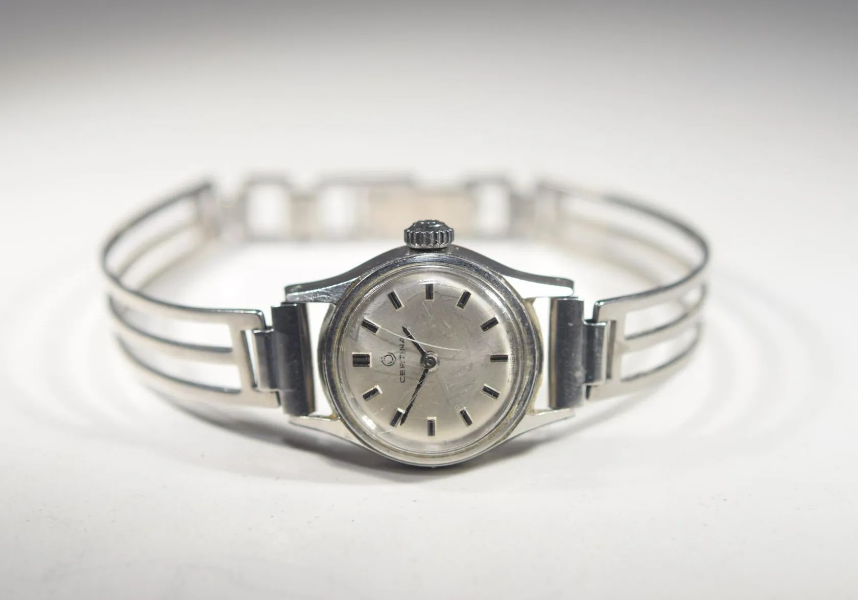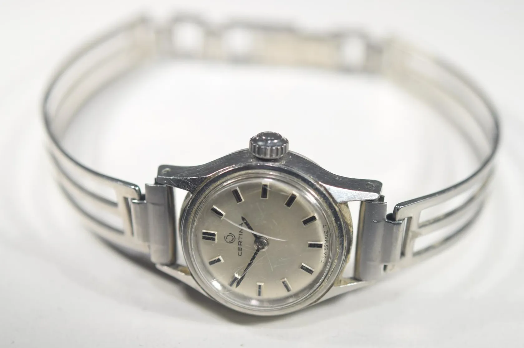Damur Certina boettnr 5991992 Ø 19,49 mm längd16,5 cm, nytt batteri behövs. trasigt lås repor på glaset. Vi lämnar ingen funktionsgaranti