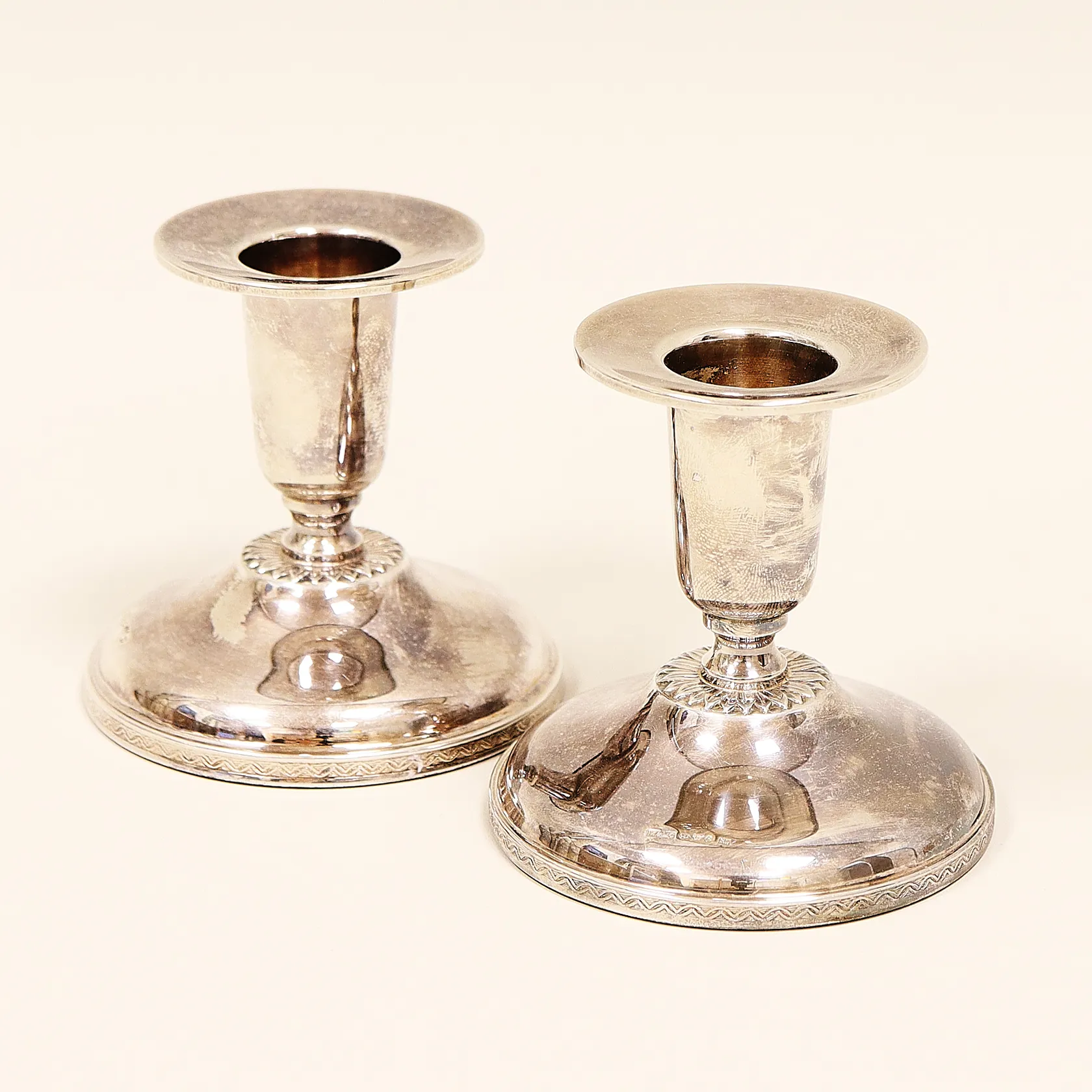 Ett par ljusstakar, 7cm, fylld botten, Ceson guldvaru AB, Göteborg 1968, bruksspår, bruttovikt 213,1g, silver 830/1000, Vikt: 213,1 g.
