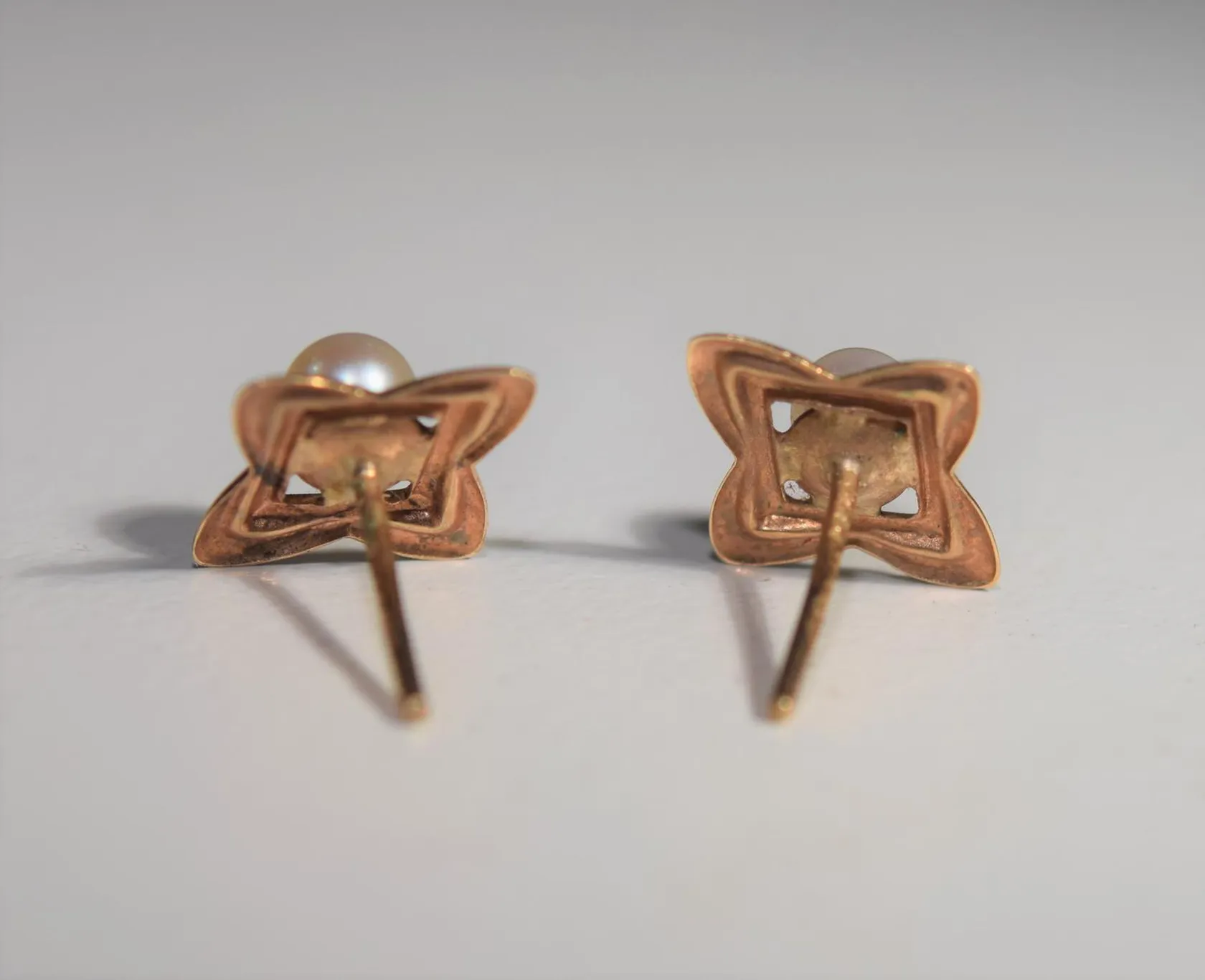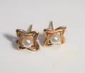 Ett par örhängen med pärla, bredd 13,23 mm. 18k, Inga ploppar Vikt: 1,2 g.