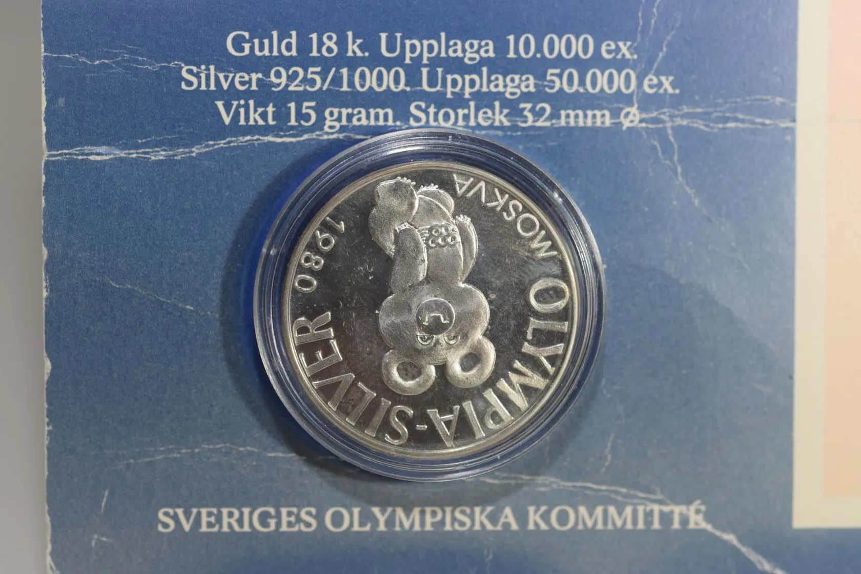 Olympia medaljen 80, världsupplaga 50.000, Motiv OS-maskoten Misja, silver 925/1000 Vikt: 15 g.