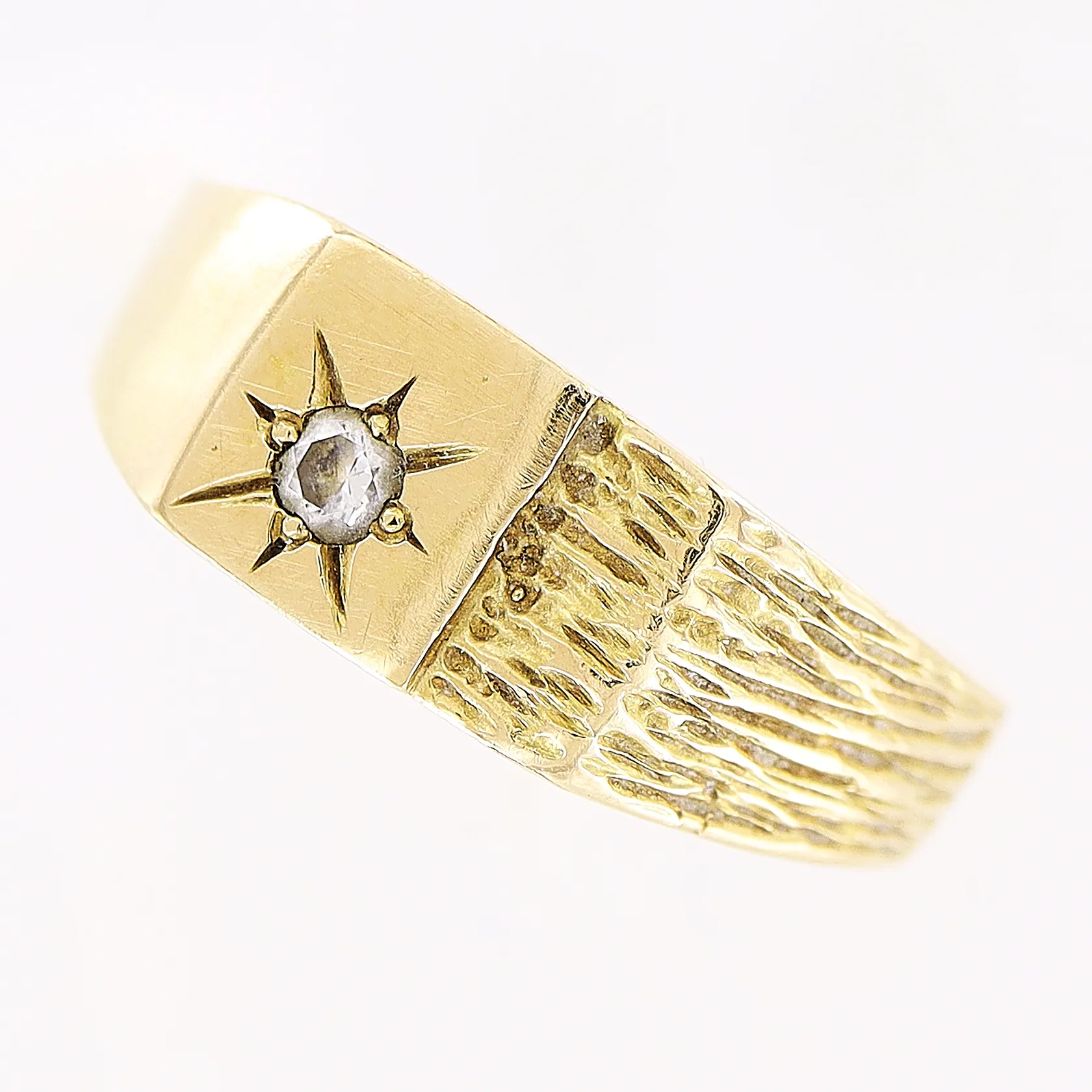 Klackring, vit sten, stl 14½, bredd 2,5-5,5mm, 18K. Vikt: 3,2 g.