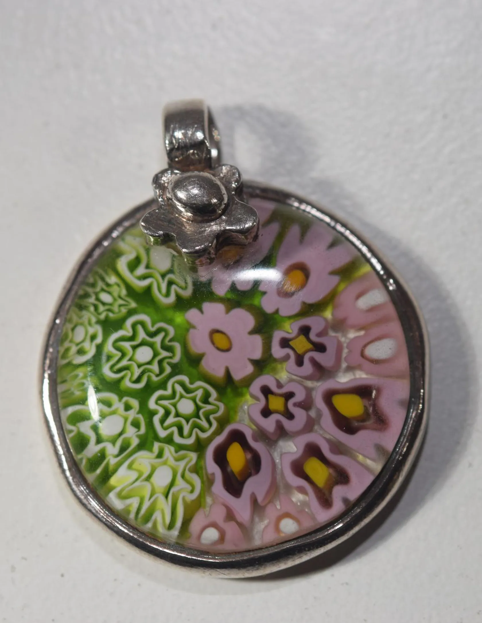Handgjord hänge /glas , längd 3,2 x 3 cm ,silver Vikt: 13,4 g.