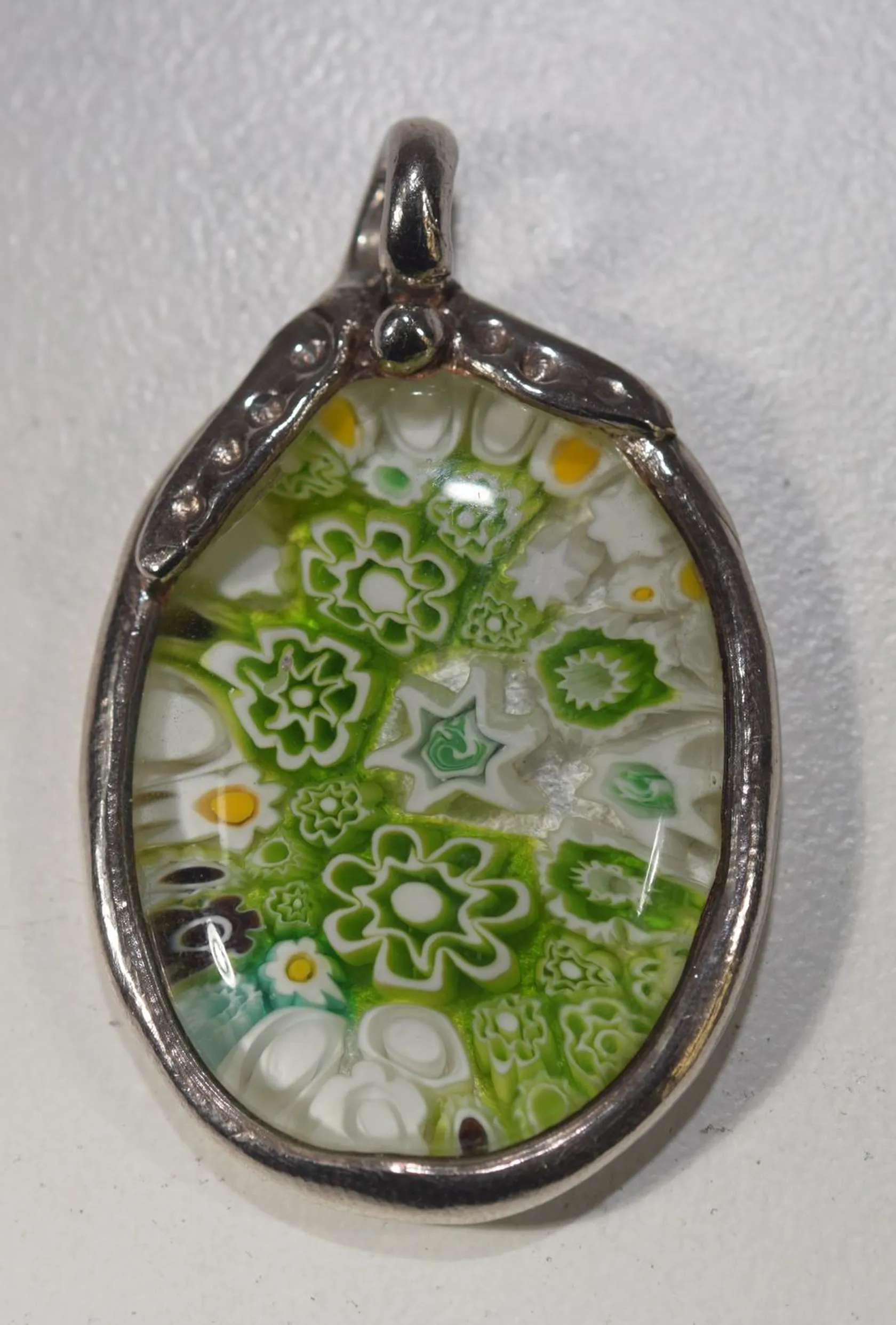 Handgjord hänge /glas, längd 4,5 x 2,8 cm , silver Vikt: 15,2 g.
