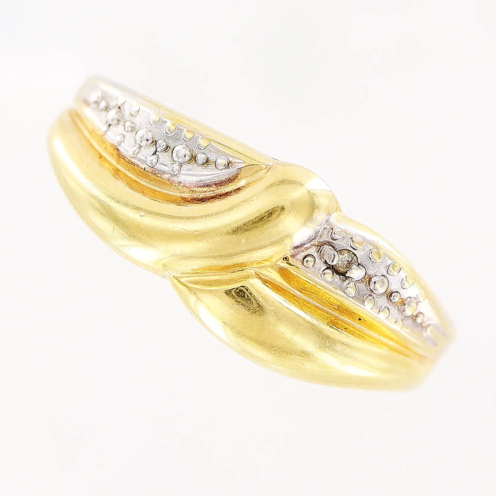 Ring, diamant 1 x ca 0,005ct, vitgulds detalj, stl 16¾, bredd 2,5-7,5mm, 18K Vikt: 1,8 g.