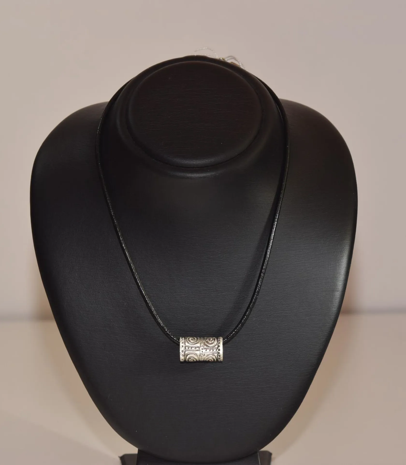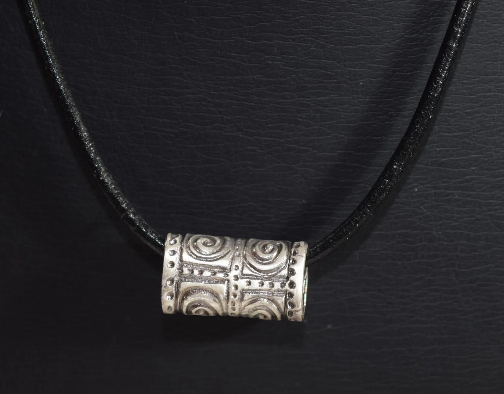 Handgjord hänge silver/skinn, längd 1 x 2,5 cm med 1 läderhalsband längd 47 cm