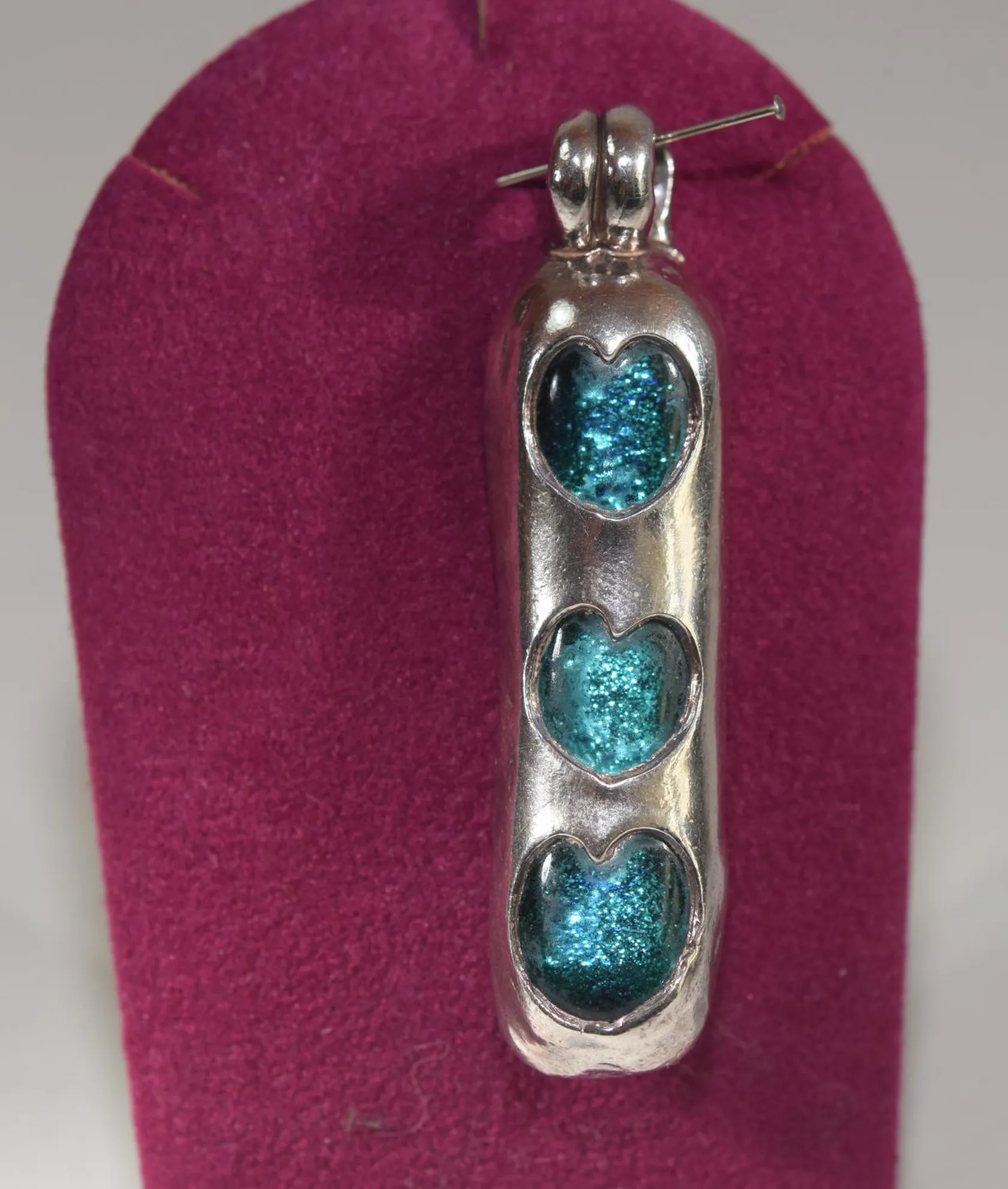 Handgjord hänge /glas, 5,9 x 1,4 cm ,silver Vikt: 18,2 g.