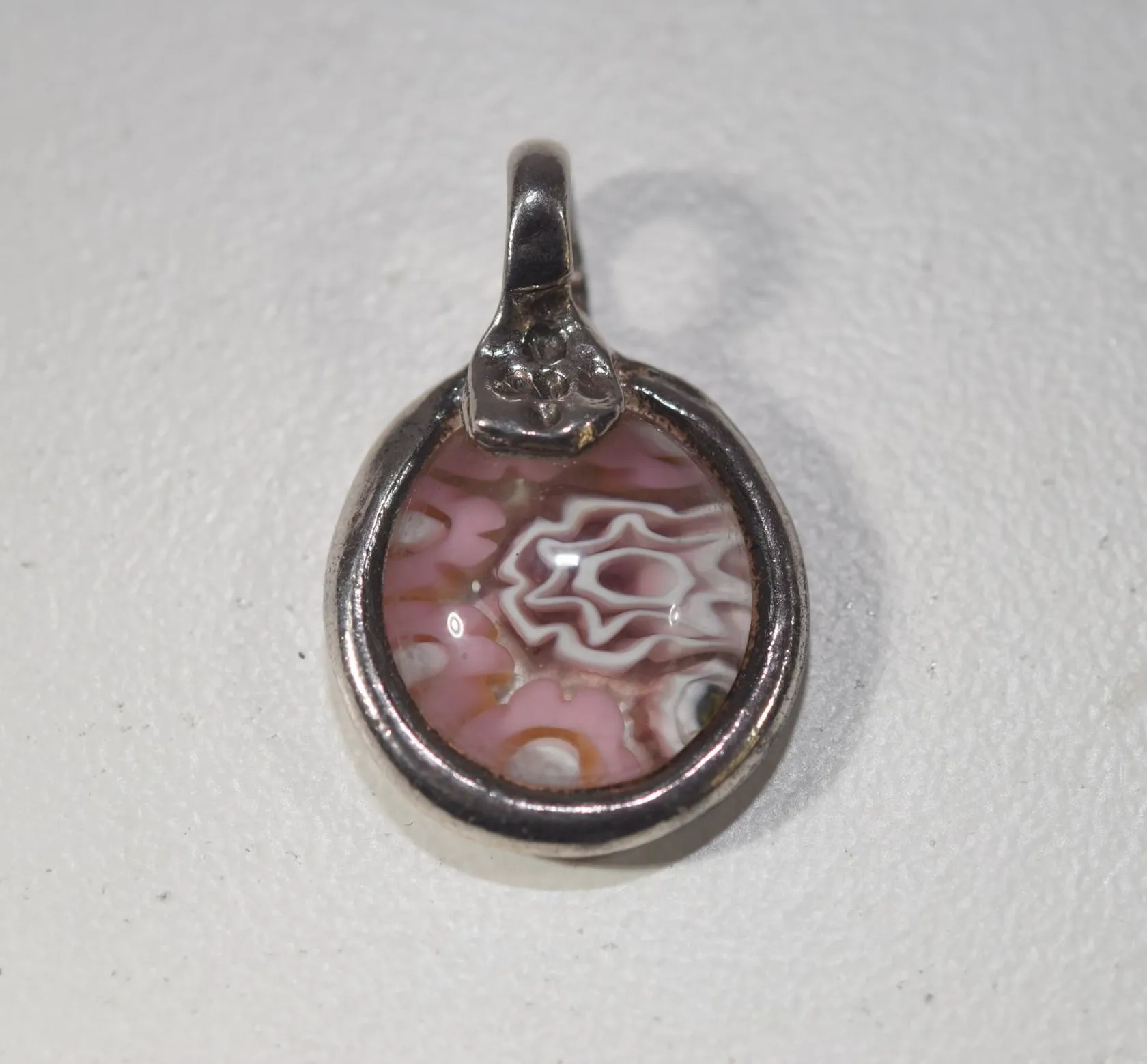 Handgjord hänge /glas , längd 2,5 x 1,7 cm , silver Vikt: 4,8 g.