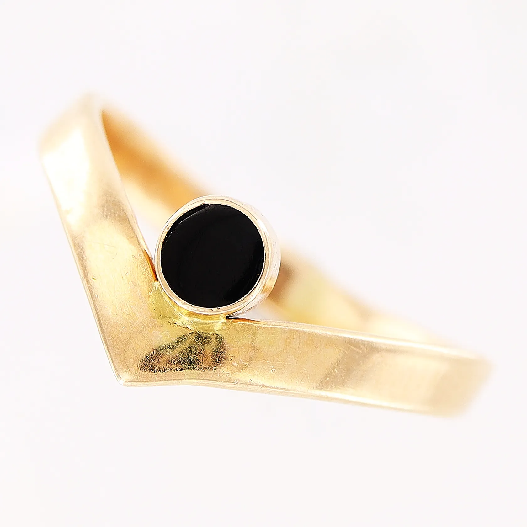 Ring, svart sten, stl 17¼, bredd 2,5-8mm, skev skena, 14K. Vikt: 2,1 g.