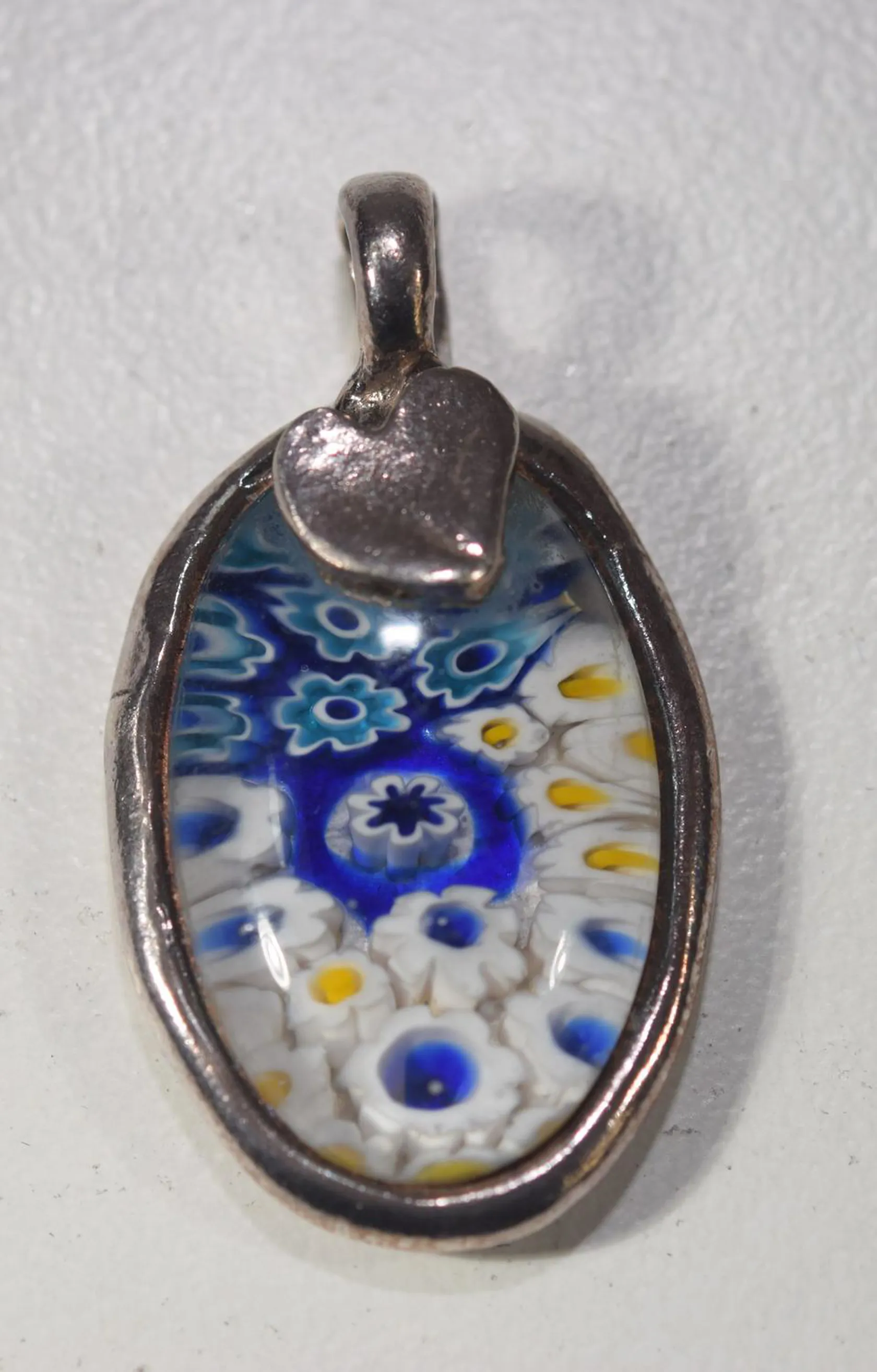 Handgjord hänge /glas, 3,8 x 2 cm , silver Vikt: 9,8 g.