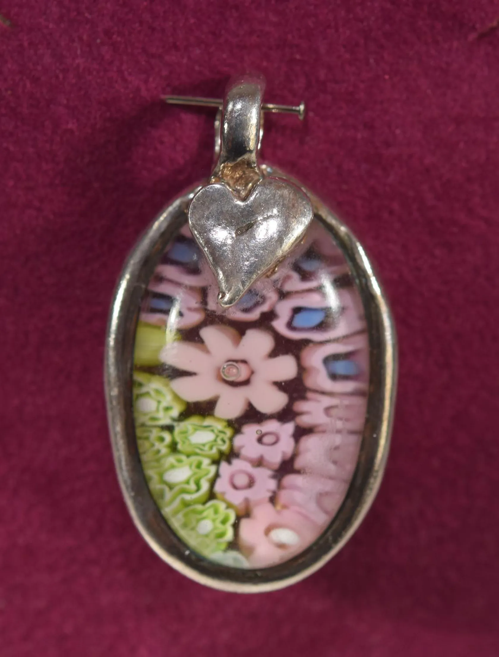 Handgjord hänge /glas, 3,8 x 2 cm , silver Vikt: 9,9 g.
