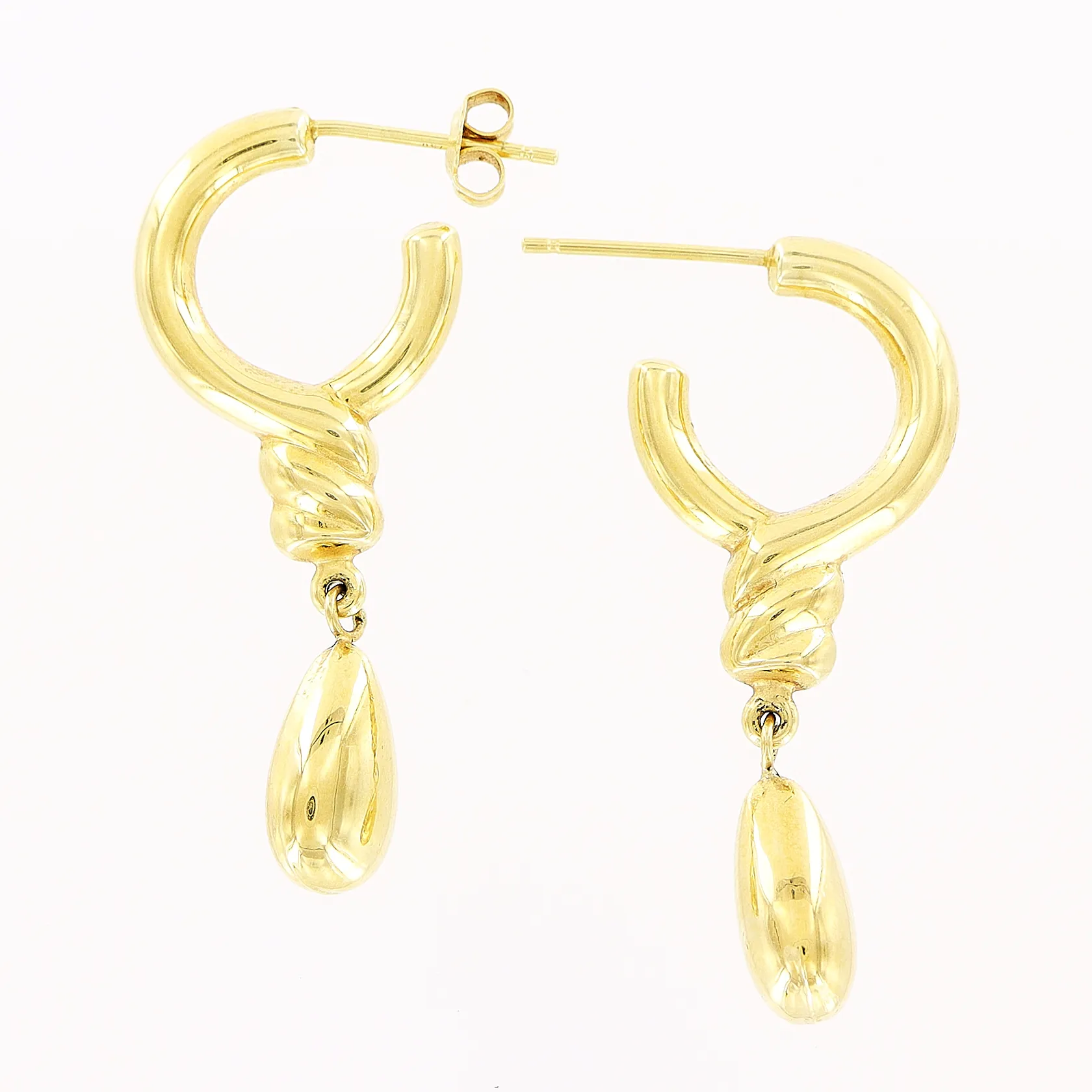 Ett par örhängen, 40mm, bredd 3-7mm, ihålig, 1 stopp saknas, 18K. Vikt: 3,8 g.