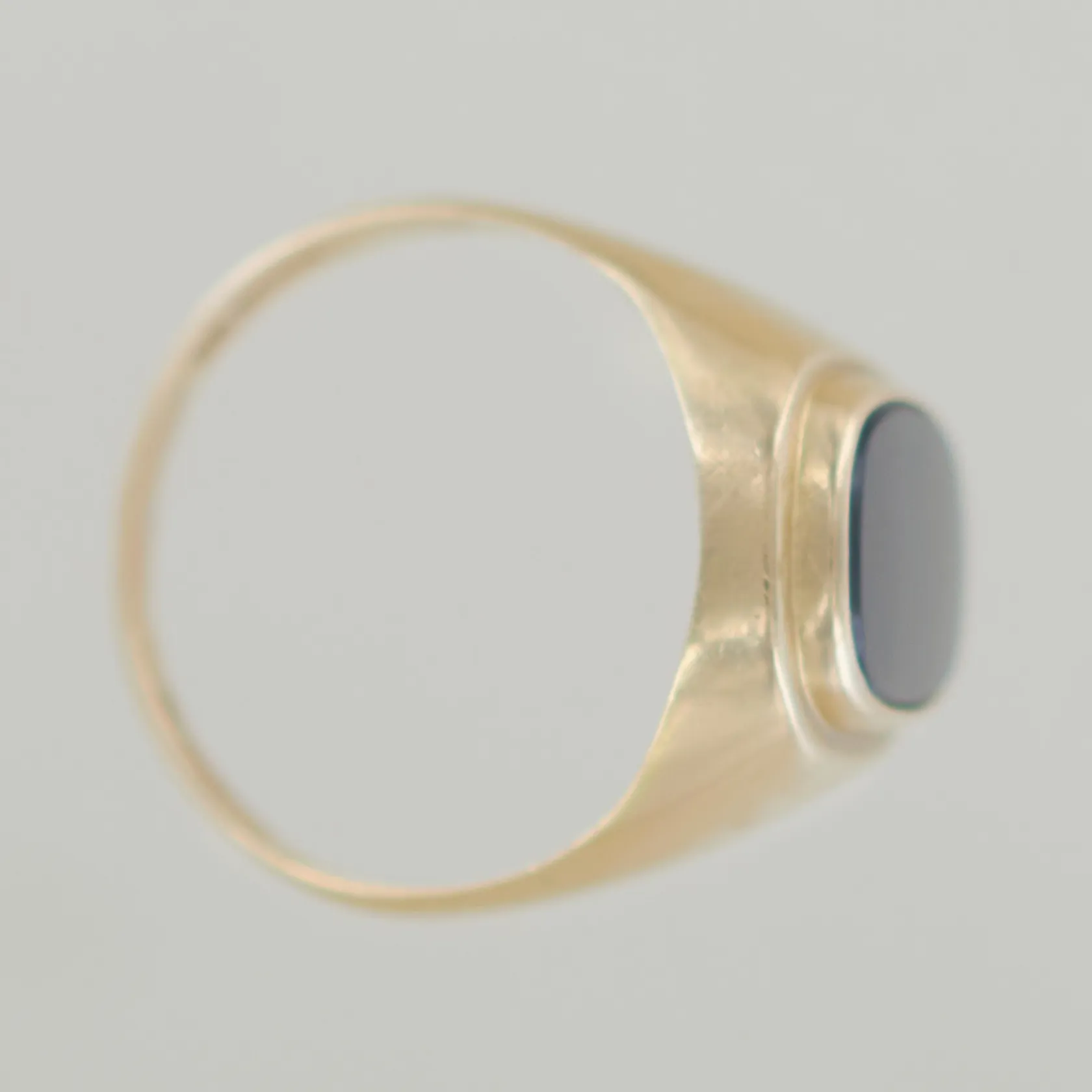 Ring med sten onyx Ø19½ mm, höjd 3-15 mm,18k Vikt: 4,8 g.