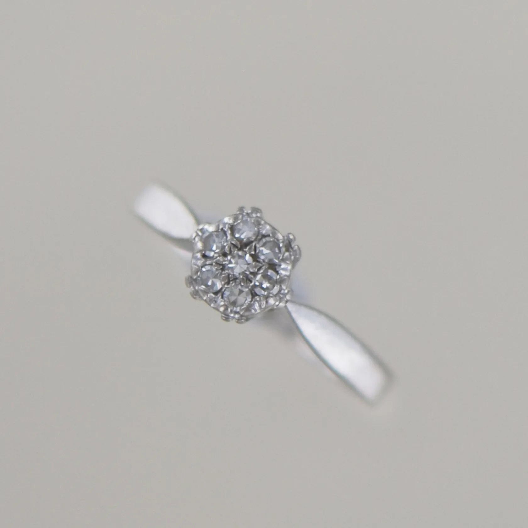 Ring med 7 diamanter, 0,13 ct Ø 17,25 mm. vitguld 18k Vikt: 3,4 g.
