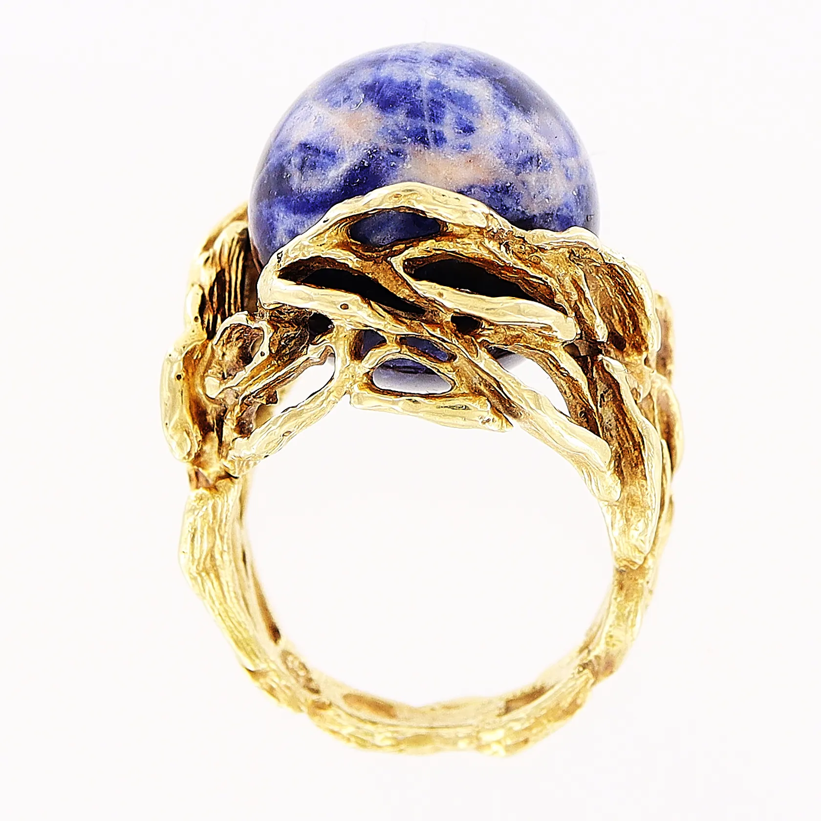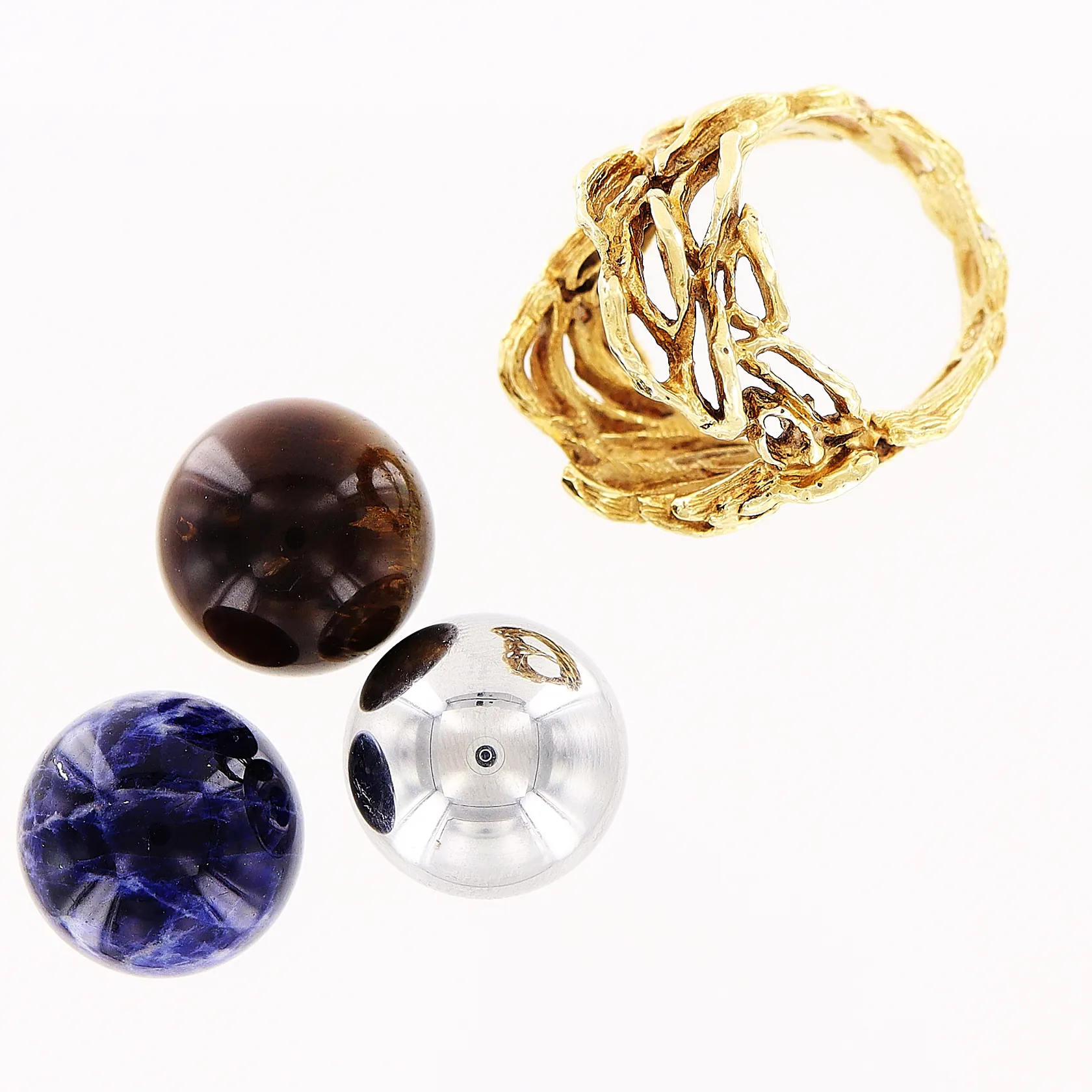 Ring, Gilbert Albert, genombruten dekor, utbytbara stenar, 3st kulor i Sodalit, Tigeröga och Hematit, stl 16, bredd 3,5-21mm, höjd på infattning 9-10,5mm, 18K Vikt: 10,9 g.