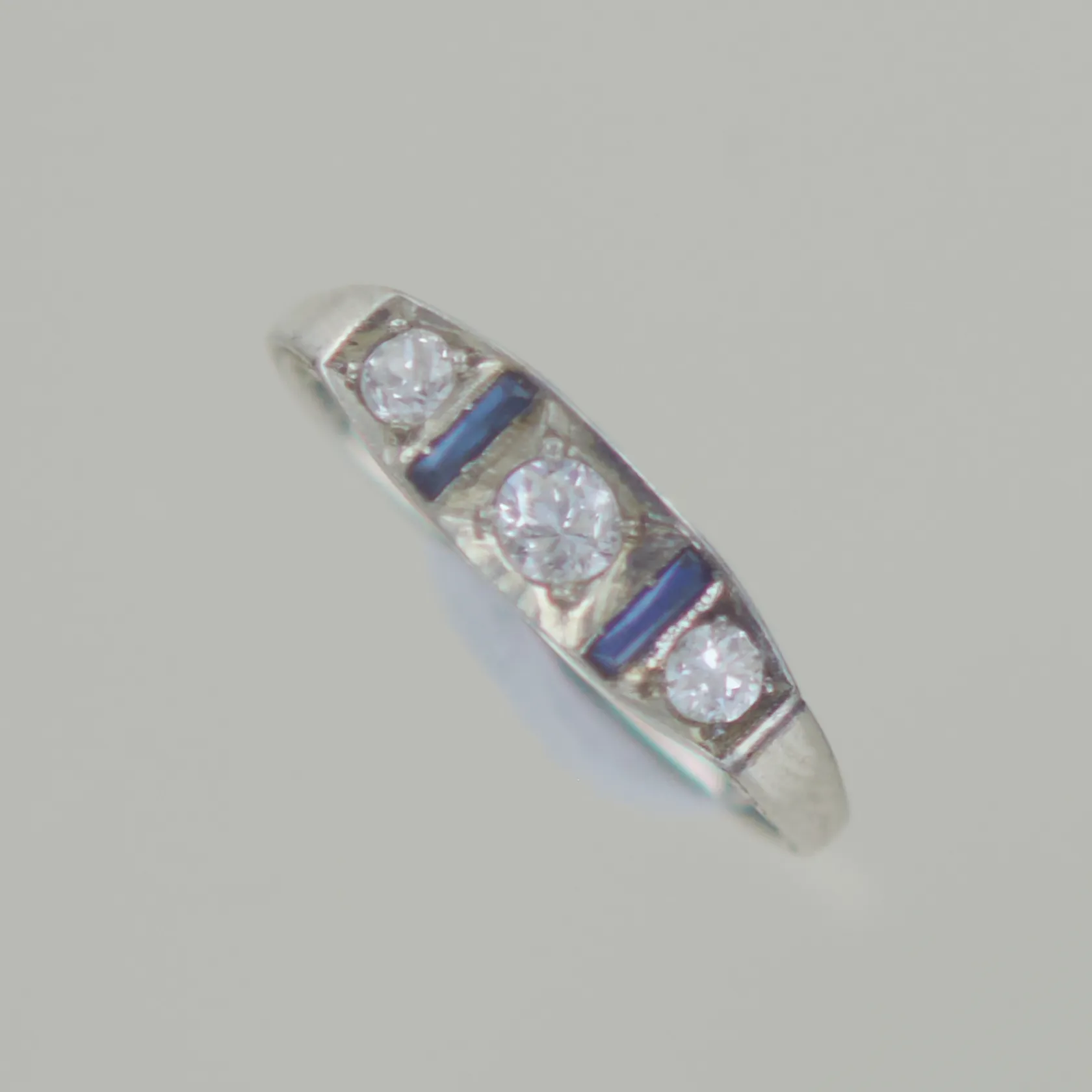 Ring med diamanter 2x0,05 +1x0,10ct, 2 safirer. diameter 16.5 mm,18k 2,2gr Vikt: 2,2 g.