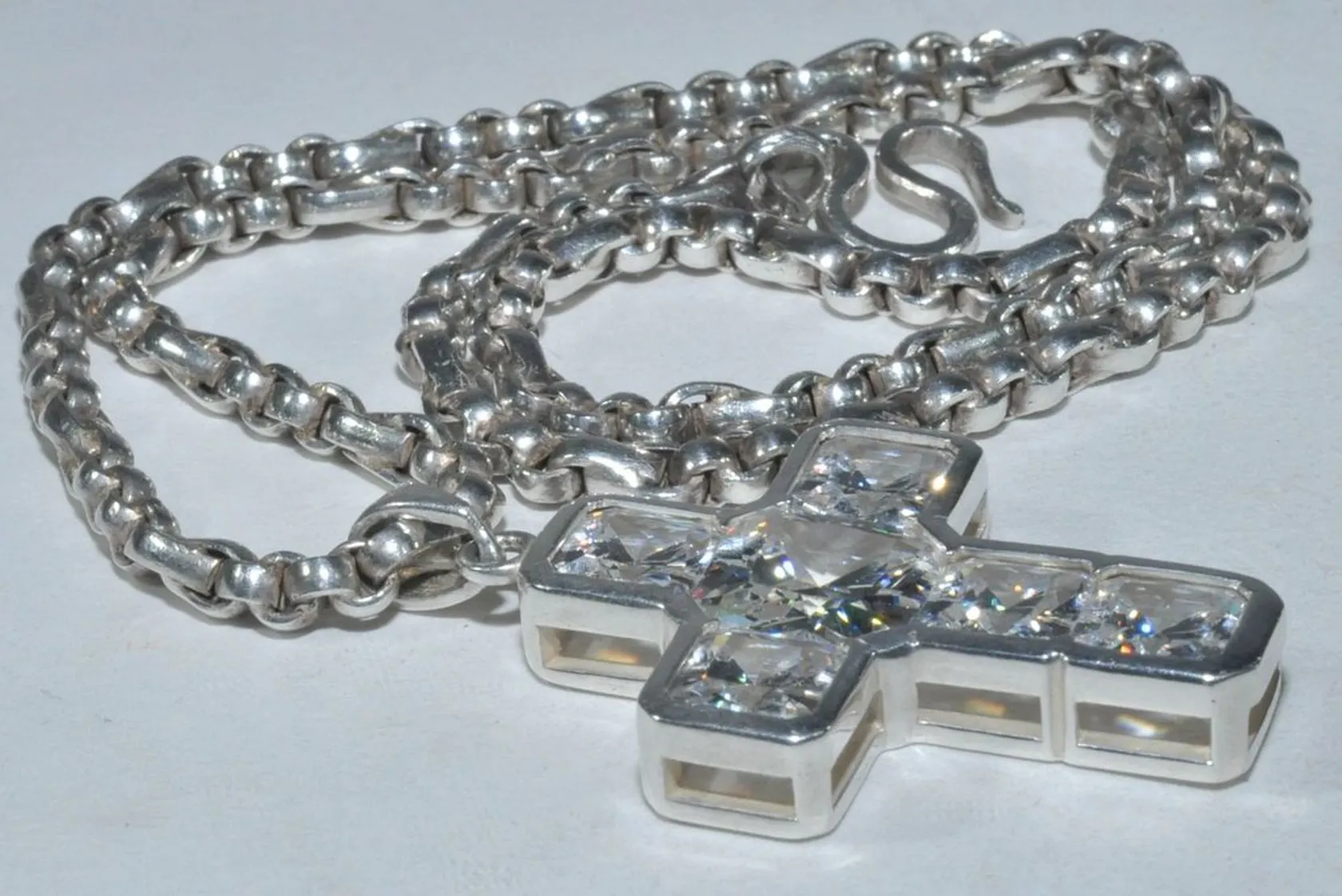 Halskedja med kors med stenar , längd 51cm ,breed 4 mm , silver Vikt: 55,1 g.