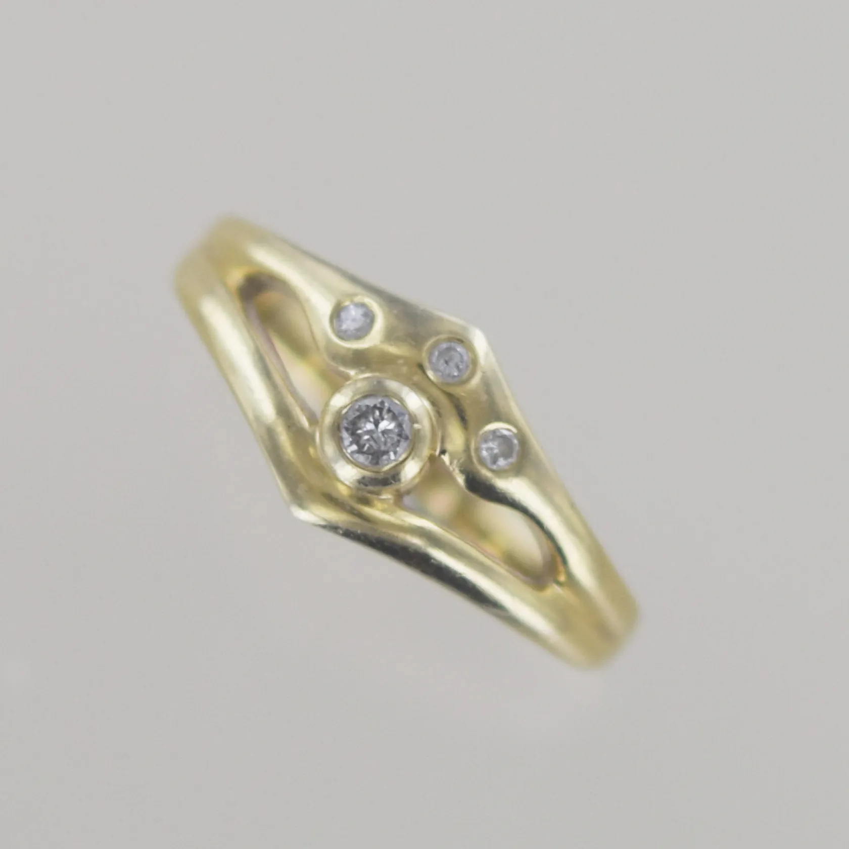 Ring med 3 + 1 briljanter, Ø 17,25 mm B 2-9mm, 14k Vikt: 3,6 g.