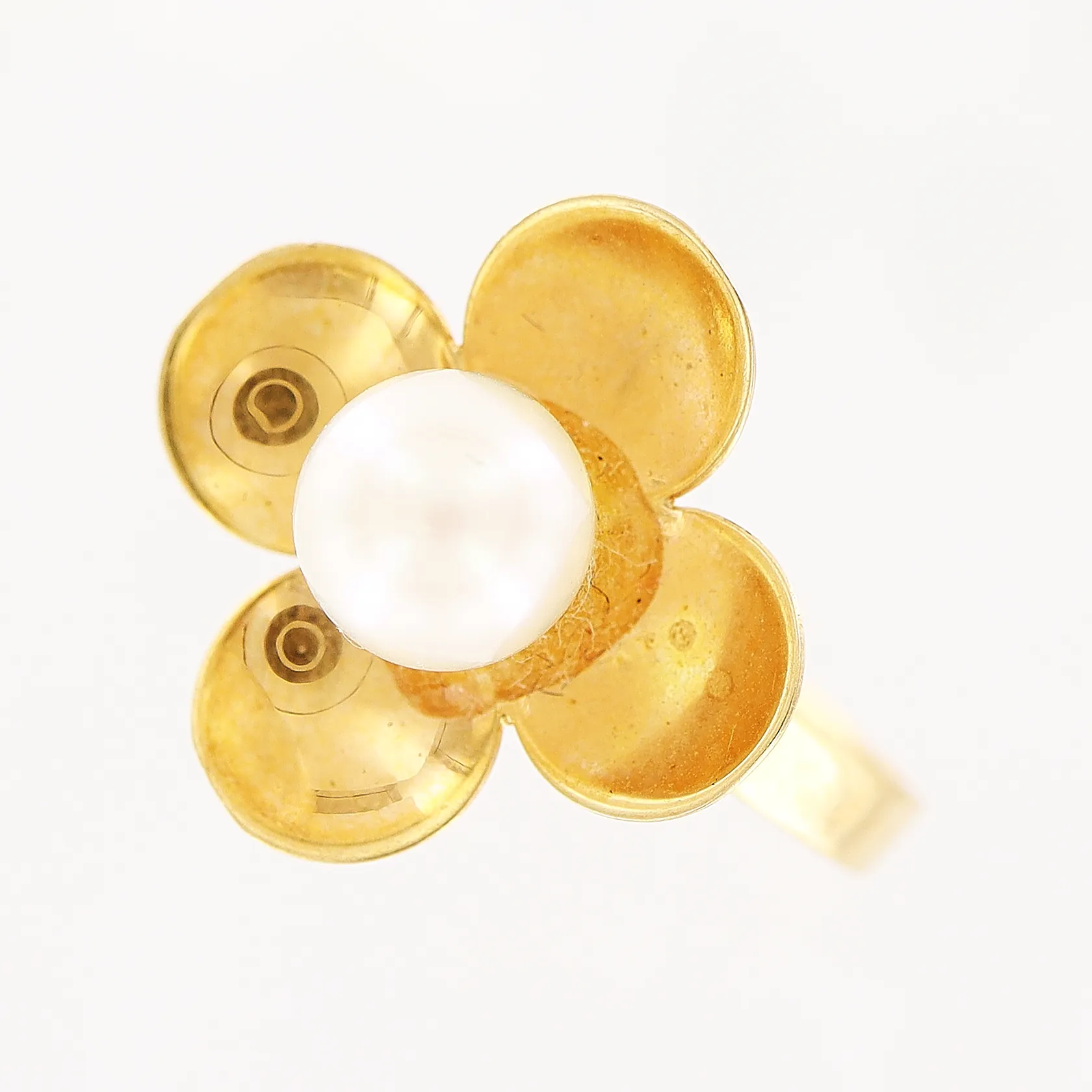Ring, blomma, odlad saltvattenspärla, stl 17, bredd 2-16mm, pärla limmad, 18K Vikt: 2,1 g.