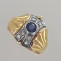 Ring med en blå sten samt vita stenar, Ø 18 mm B 3,4 - 16 mm 18k Vikt: 4,8 g.