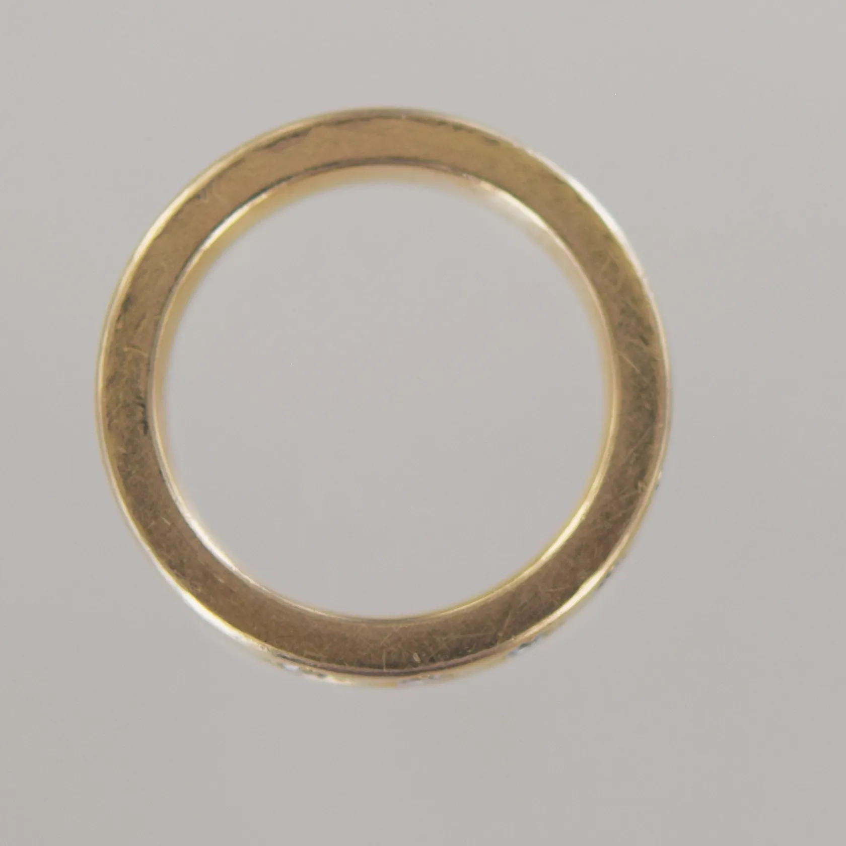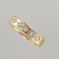 Alliansring från Schalins med 5 st briljantslipade diamanter på totalt 0,26 ct, Top Wesselton, VVS, god slipning. Ø 17 mm Bredd 5 cm, 18k, certifikat finns Vikt: 12 g.