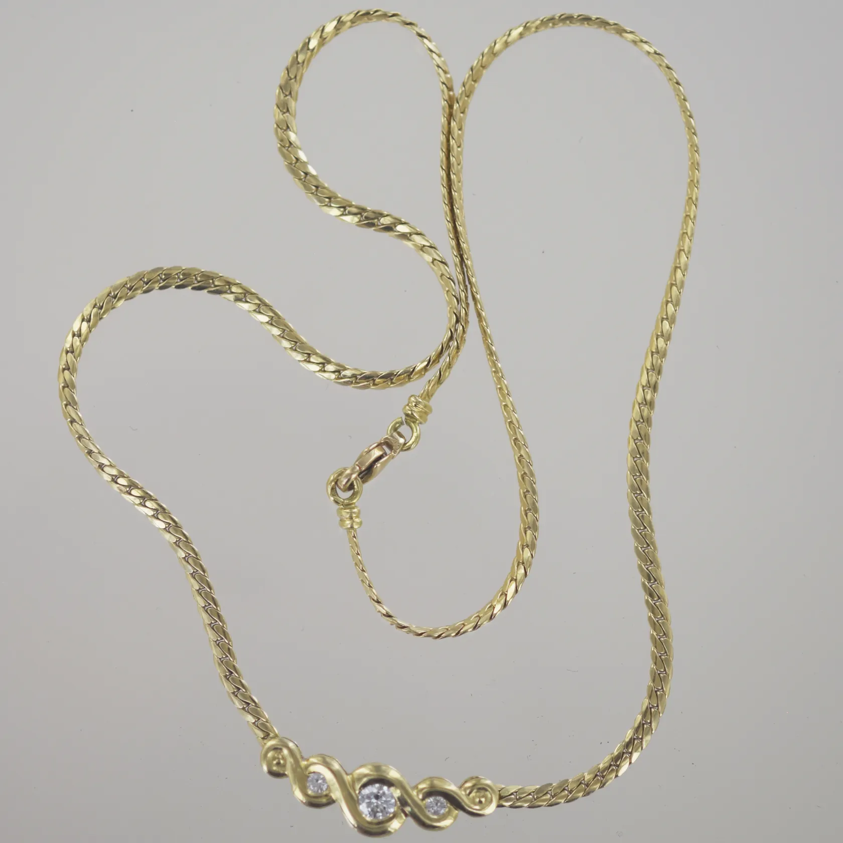 Collier med diamanter 1 x 0,11 ct + 2 x 0.04ct, längd 43 cm, 18k 12,3 gr Vikt: 12,3 g.