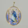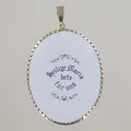 Hänge ovalformad målad sten, längd 5 cm, bredd 3 mm, 14k . Vikt: 10,7 g.