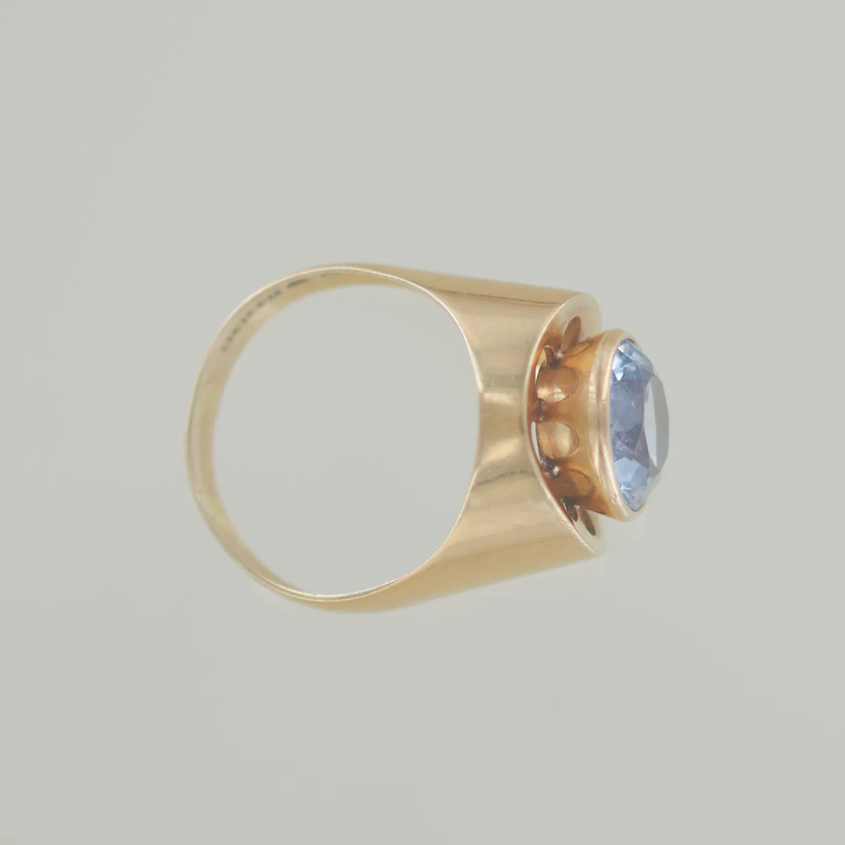 Ring m blå sten akvamarin? Ø 18,5mm B 4-15mm, 18K Vikt: 5,7 g.