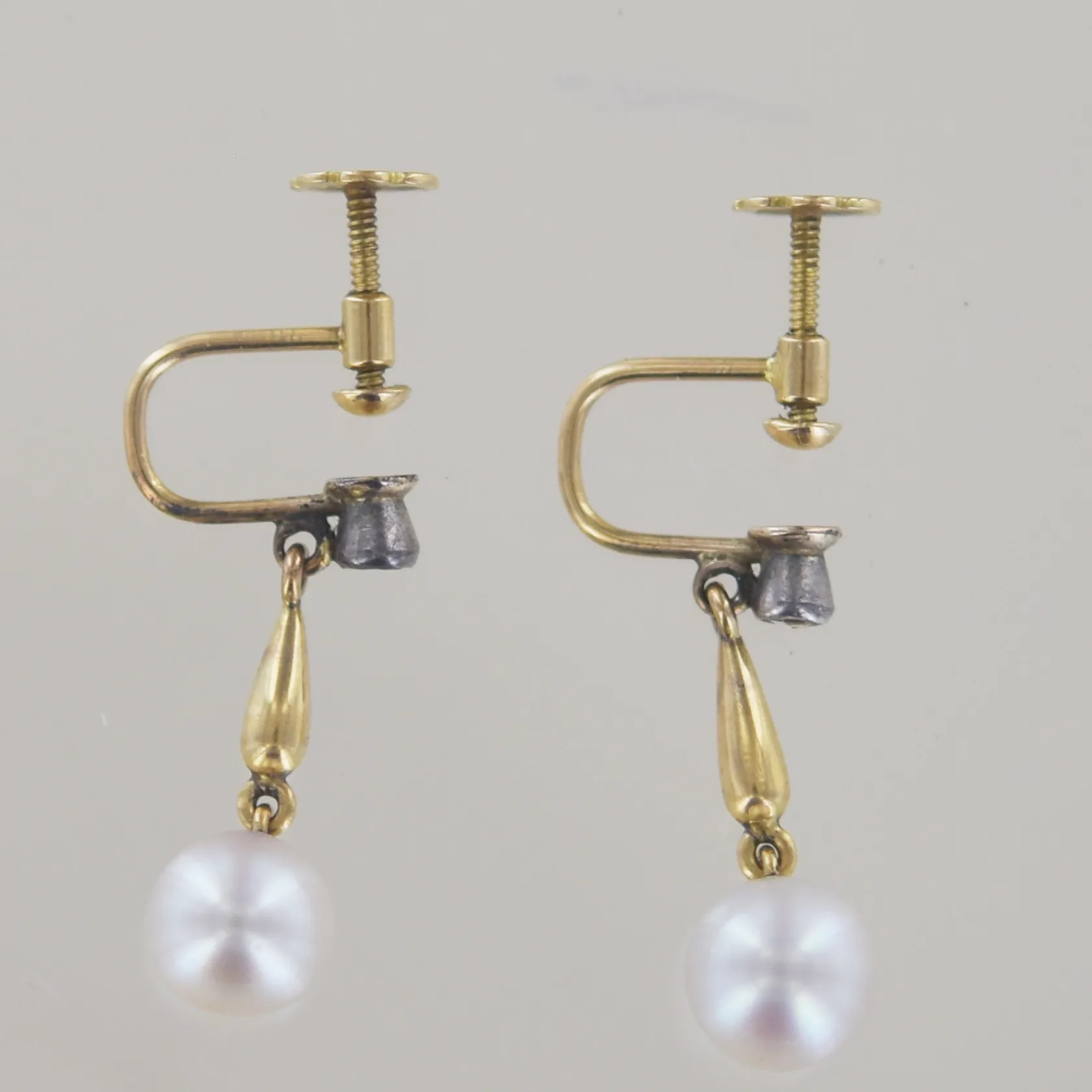 Pärlörhänge, ett par, med diamant 0,02 ct, L 2 cm, 18k Vikt: 4,2 g.
