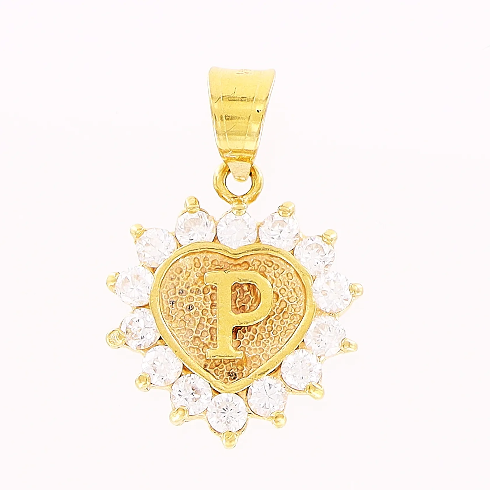 Hänge, hjärta, bokstaven P, vita tenar, 14x22mm, 21K Vikt: 2 g.