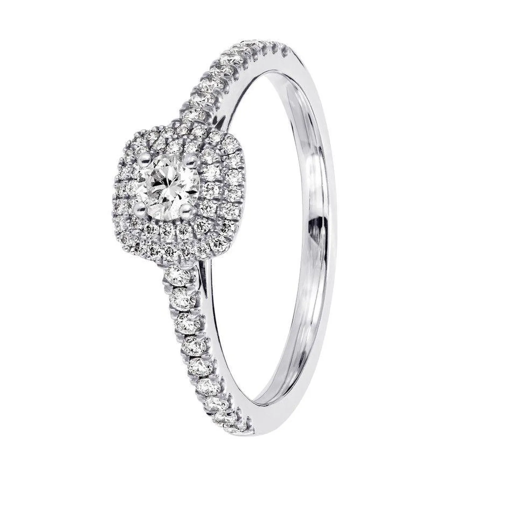 Ring "story af love" med 59 diamanter 0,42ct WSI, Mittenstenen är 0,15ct, övriga 58 diamanter 0,27ct totalt, Ø 17 mm. 18k, nyskick Vikt: 3,1 g.