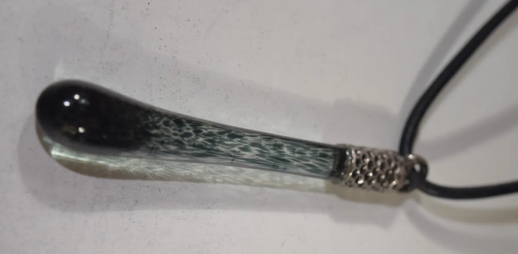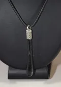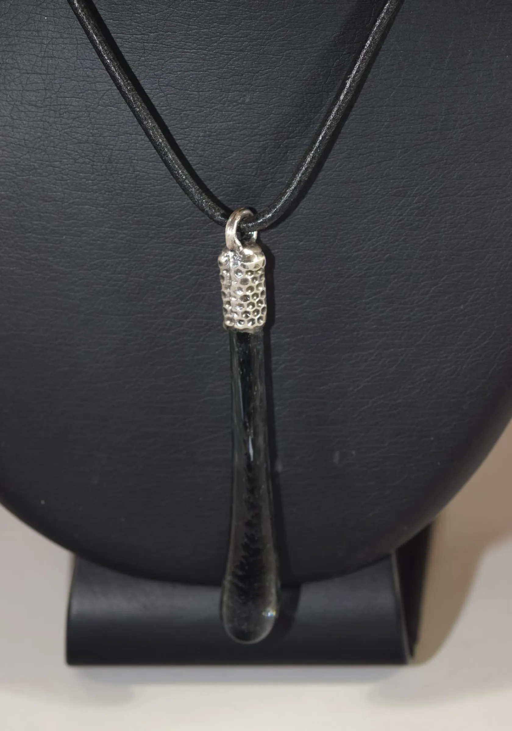 Halskedja hänge glas/silver/skinn, längd 9,5 cm med 1 läderhalsband L 43 cm