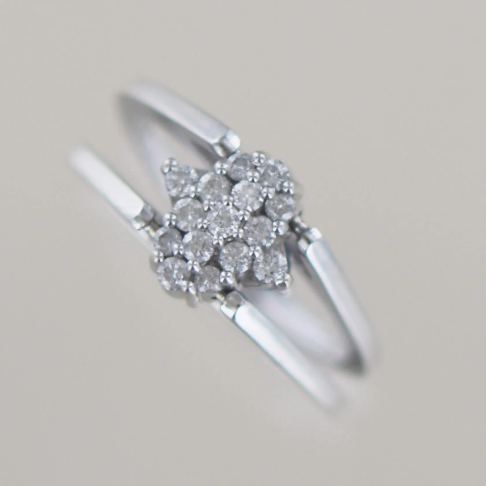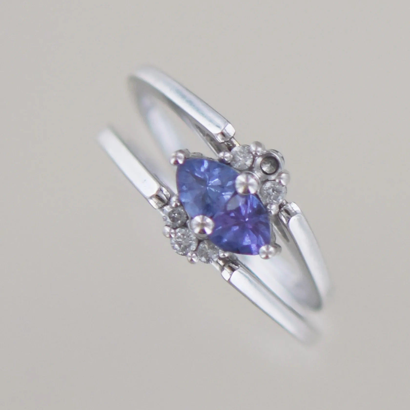Ring vändbar med diamanter på ena sidan 15x 0,02ct och 2 ametister.Och 5 diamanter på andra sidan 4x 0,01ct och 1x 0,02ct, en 0,02ct saknas, Ø 17,5 mm, bredd 9 mm, 14k. Kvitto medföljer, köpt utomlands Vikt: 5,5 g.