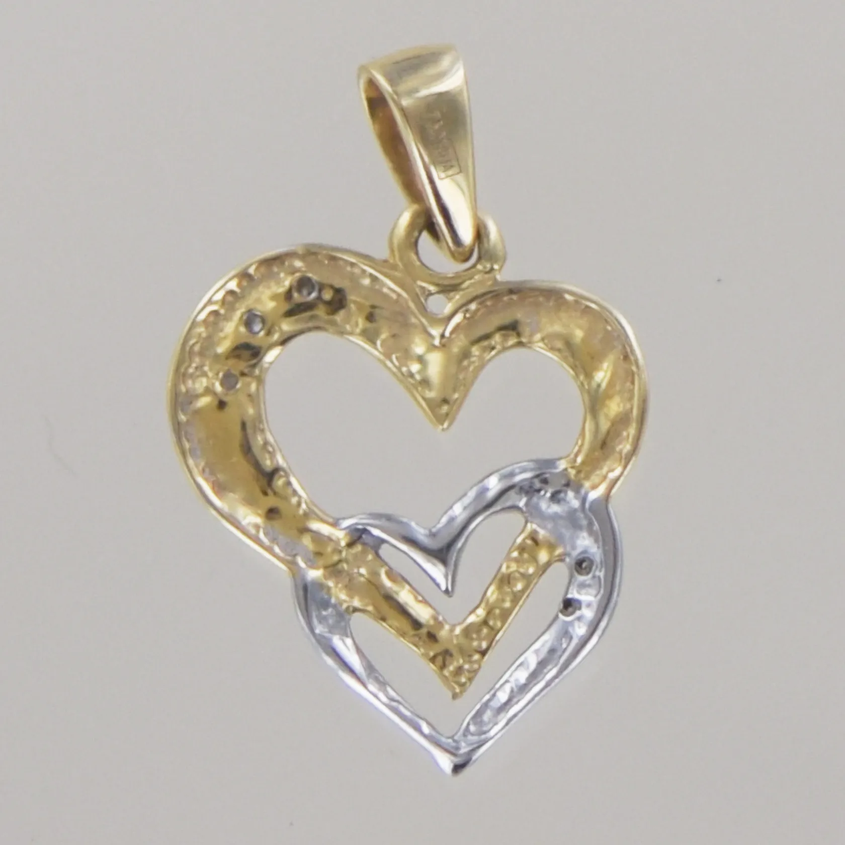 Hänge dubbel hjärta med små diamanter, L 2 cm B 3 mm vitguld/rödguld 18k Vikt: 1,3 g.