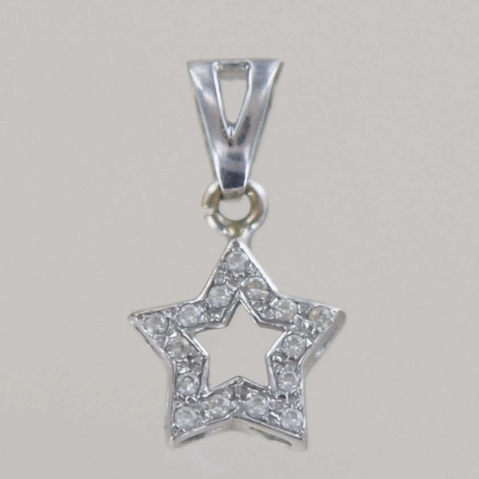 Hänge stjärna med stenar, längd 2 cm bredd 10 mm, vitguld 14k Vikt: 1,7 g.