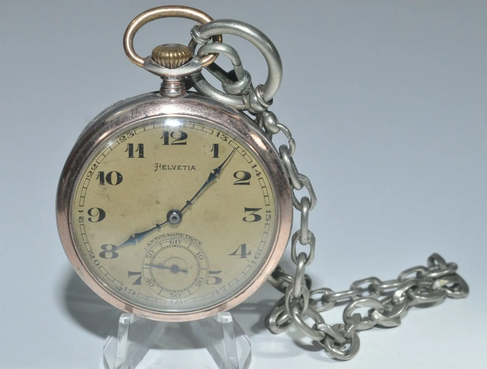 Fickur Helvetia AntimagnetiqueNr 3810136, vikt inkl kedjan Ø 48 mm Vi lämnar ingen funktionsgaranti!