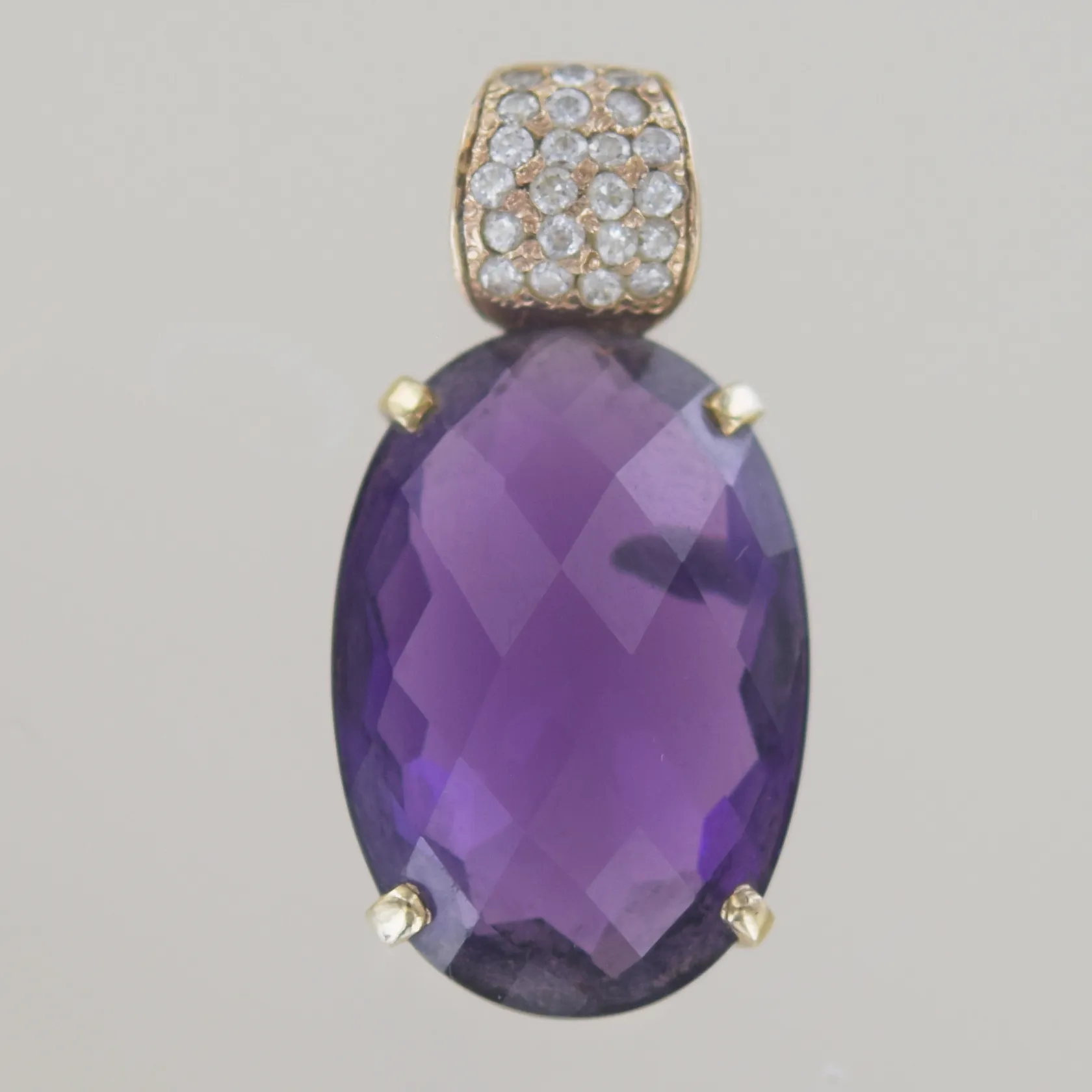 Hänge med ametist o zirkoner L 3 cm B 15 mm tjocklek 9 mm, 14k Vikt: 6,1 g.